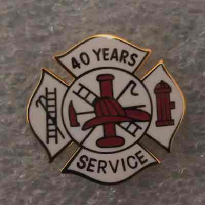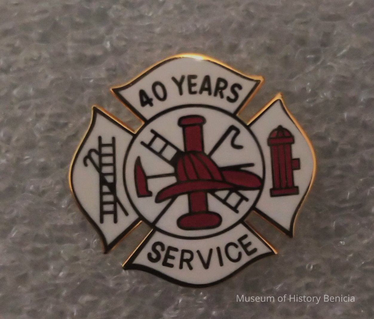 Red and White Maltese Cross Benicia Volunteer Fire Service Volunteer Recognition Pin - 40 Years of Service