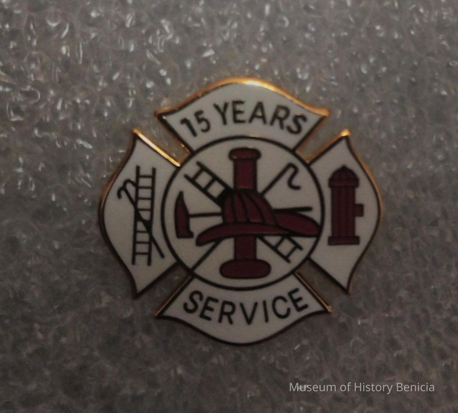 Red and White Maltese Cross Benicia Volunteer Fire Service Volunteer Recognition Pin - 15 Years of Service