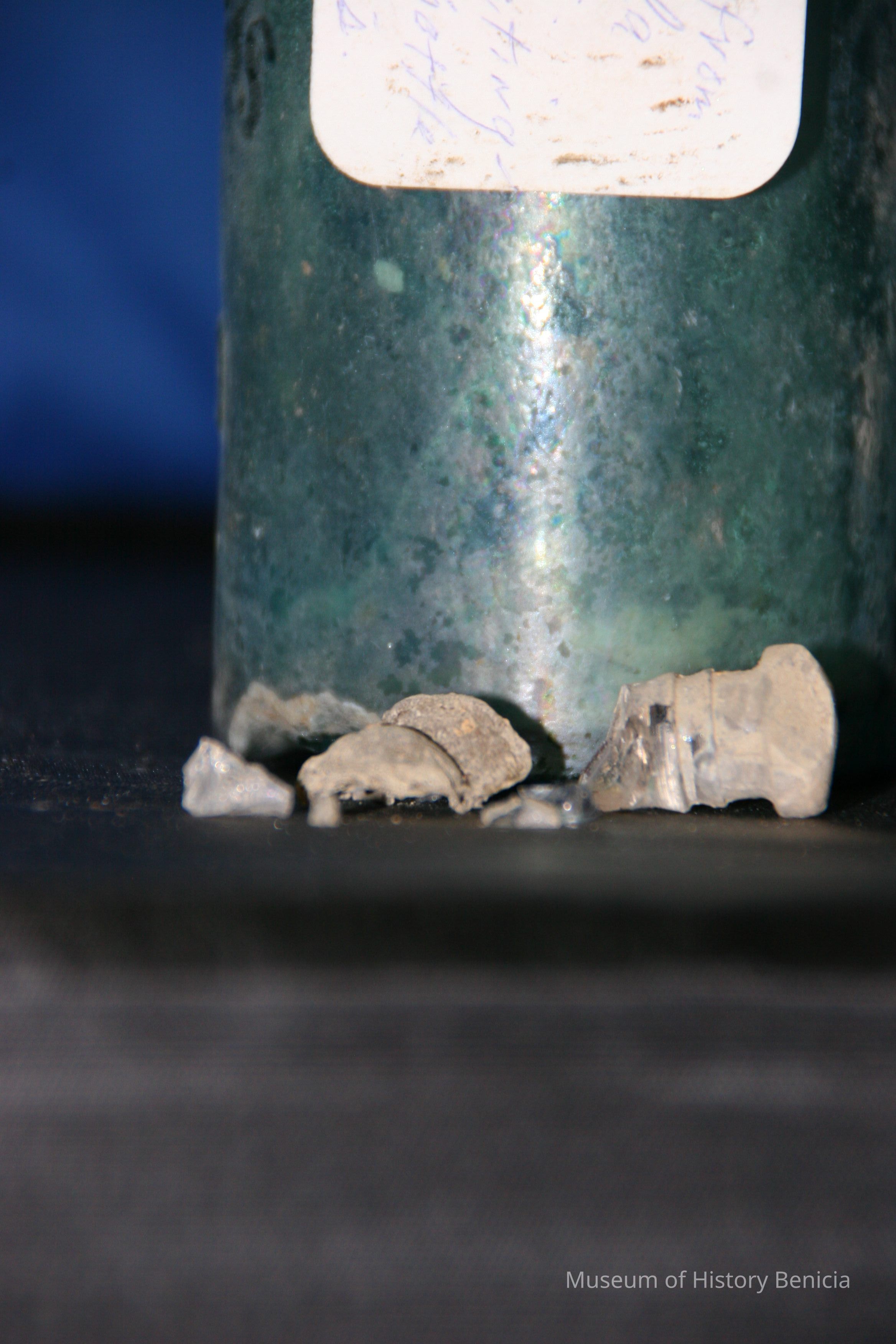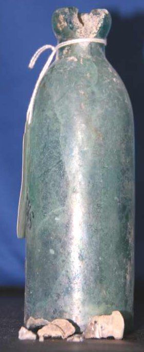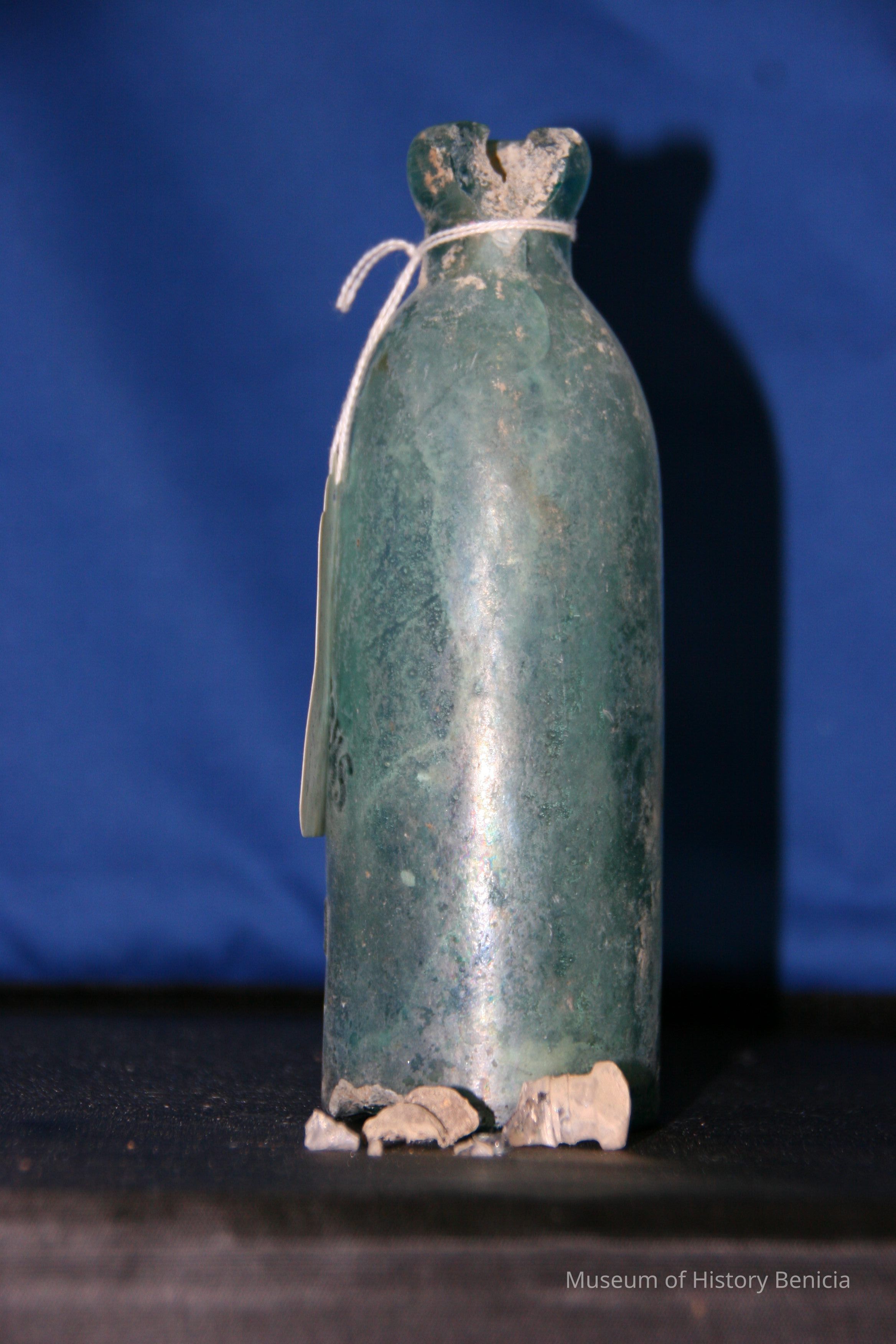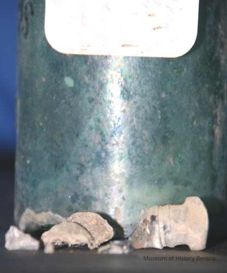 Glass bottle found at Benicia Barracks site; found near current site of the National Guard Armory on Hillcrest Avenue in Benicia. (similar to BHM00.6.28)