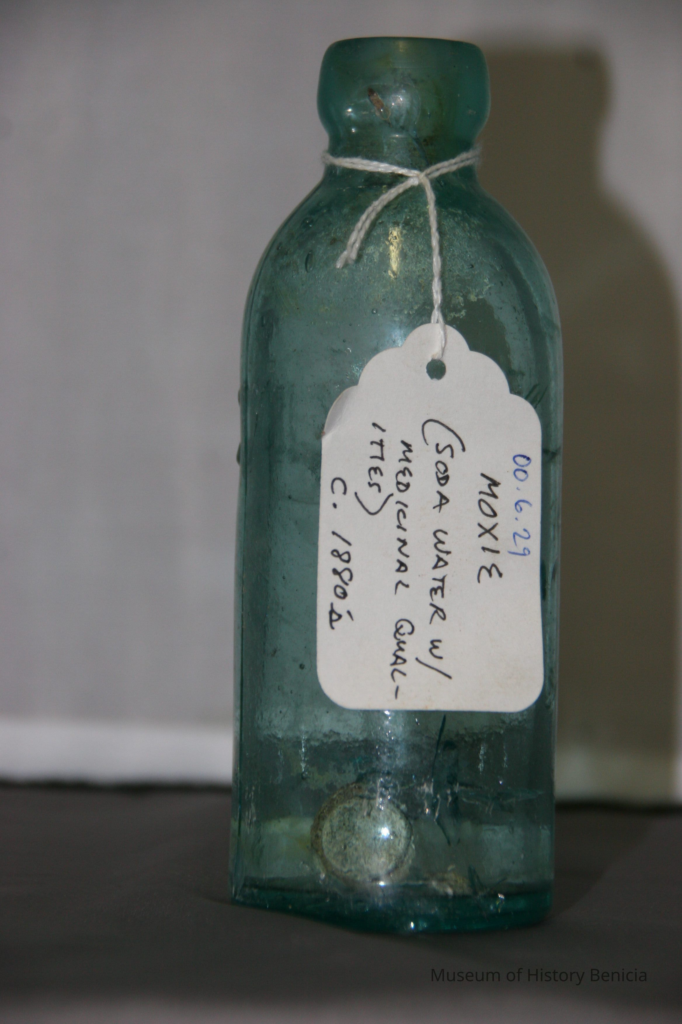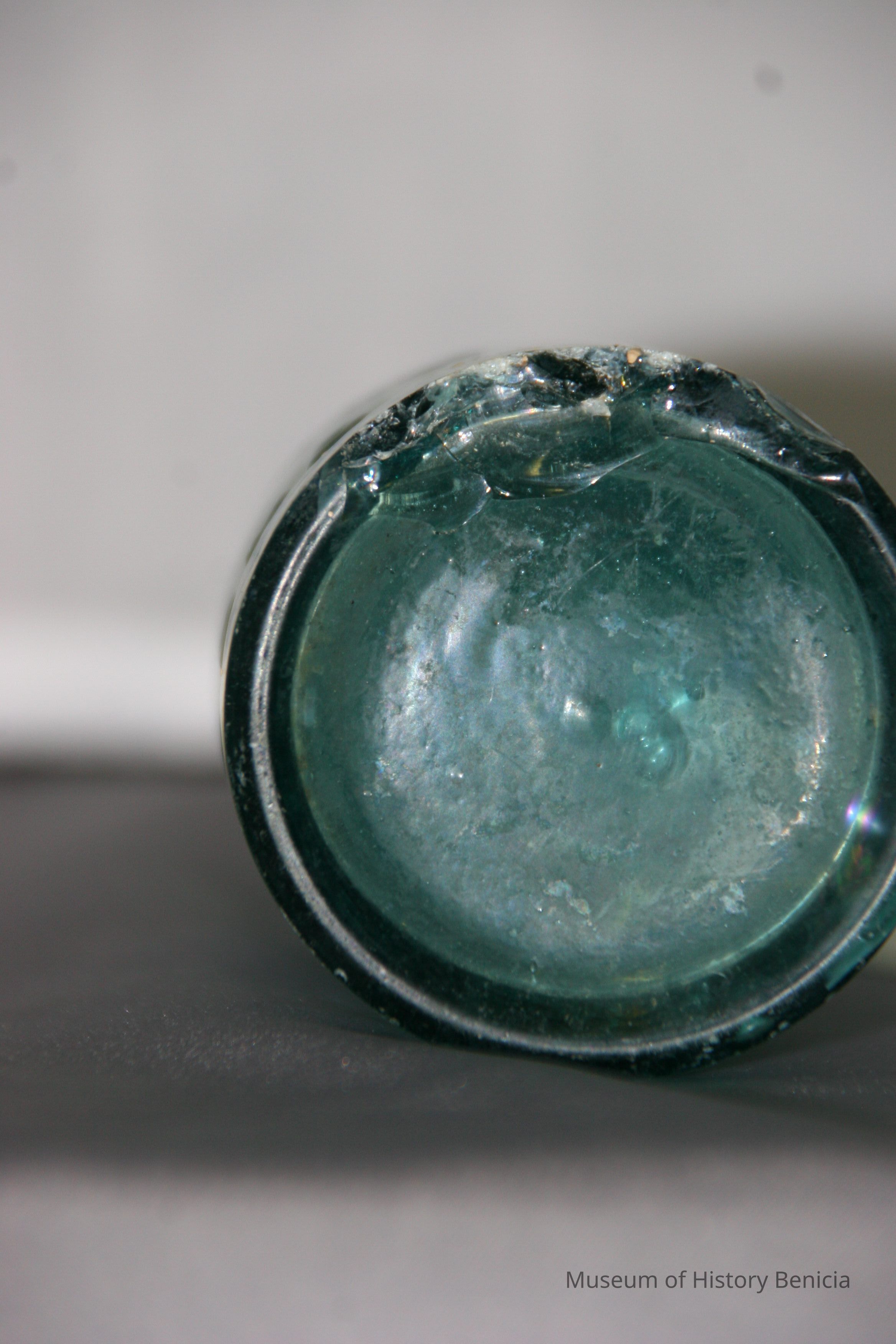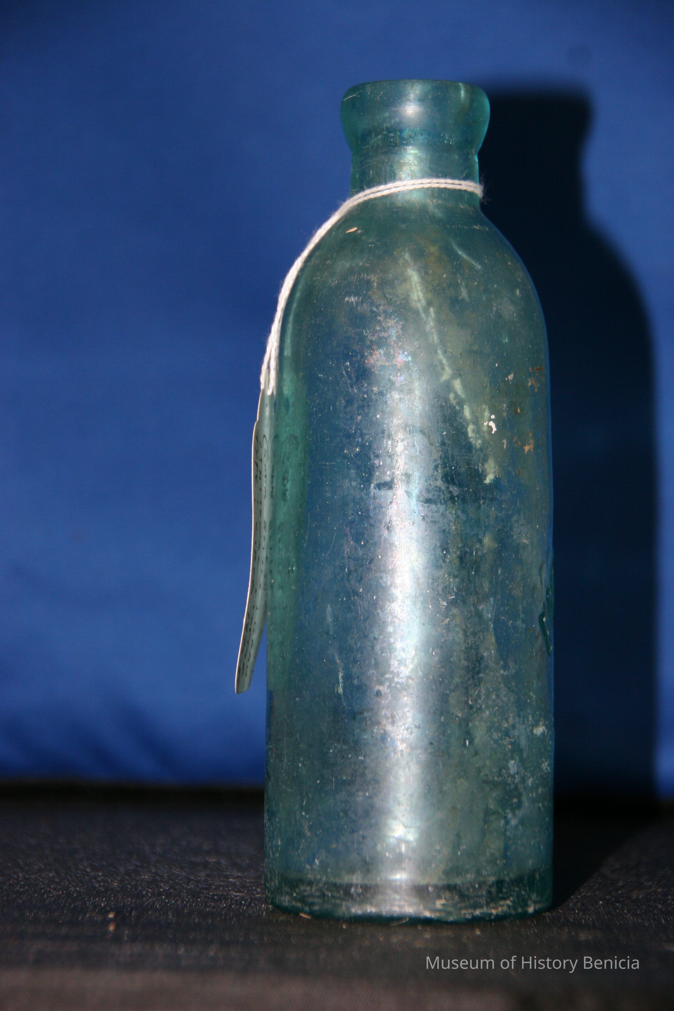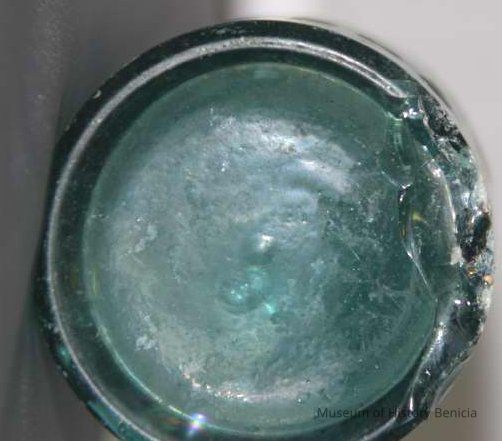 Glass bottle found at Benicia Barracks site; found near current site of the National Guard Armory on Hillcrest Avenue in Benicia. (similar to BHM00.6.27)