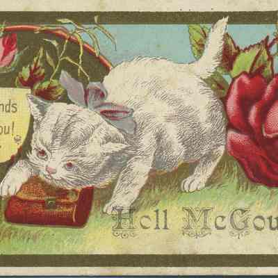 Front: White caat with roses.