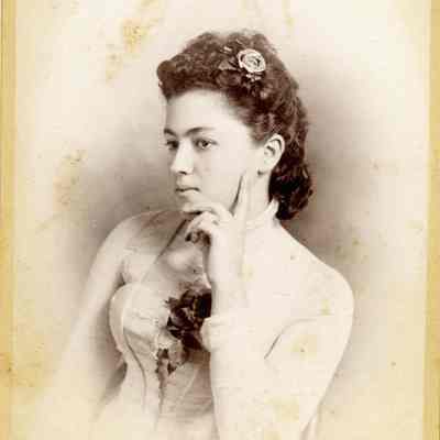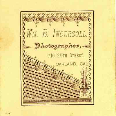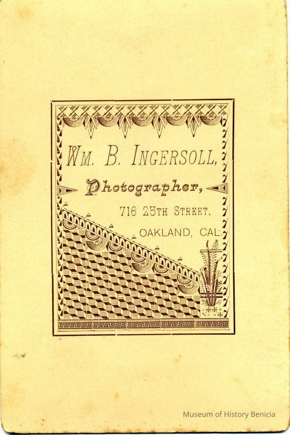 Cabinet photo of a woman. It is in a studio. The image shows some foxing. It came from a photo album of portraits with some photos with names of subjects. Family names: Durrant, Pfister, Dalton, Reynolds, Booth, Gucker. Album is covered in red plush. This photo shows the name Nettie Pfister Reynolds written under the photo in the album. It was taken by Ingersol in Oakland.