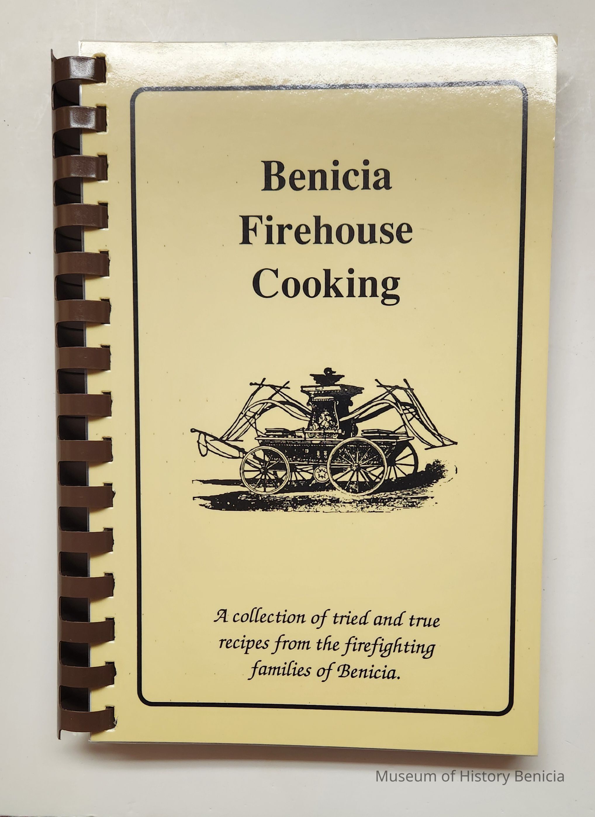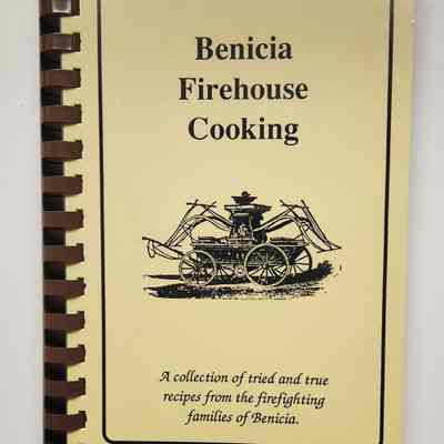 "Benicia Firehouse Cooking" spiral bound book; copyright 1978 Fund Craft It includes recipes from volunteer firemen, families and friends. There is helpful cooking information and ads included. Sponsored by Benicia Volunteer Firemen Inc. and the Benicia Fire Museum. Officers from 1992 are listed.