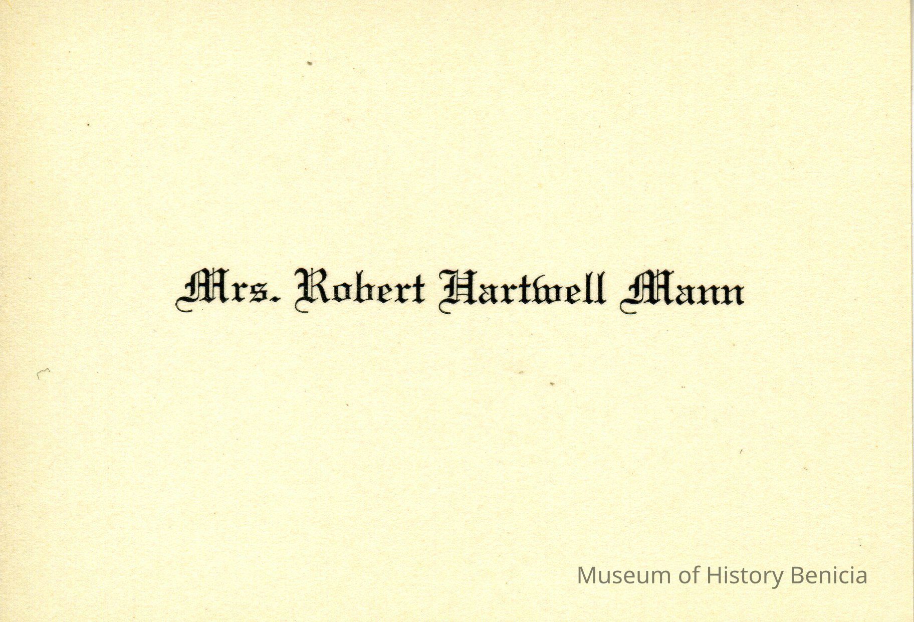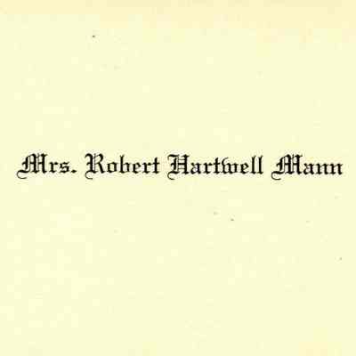 Front of card reads "Mrs. Robert Hartwell Mann"