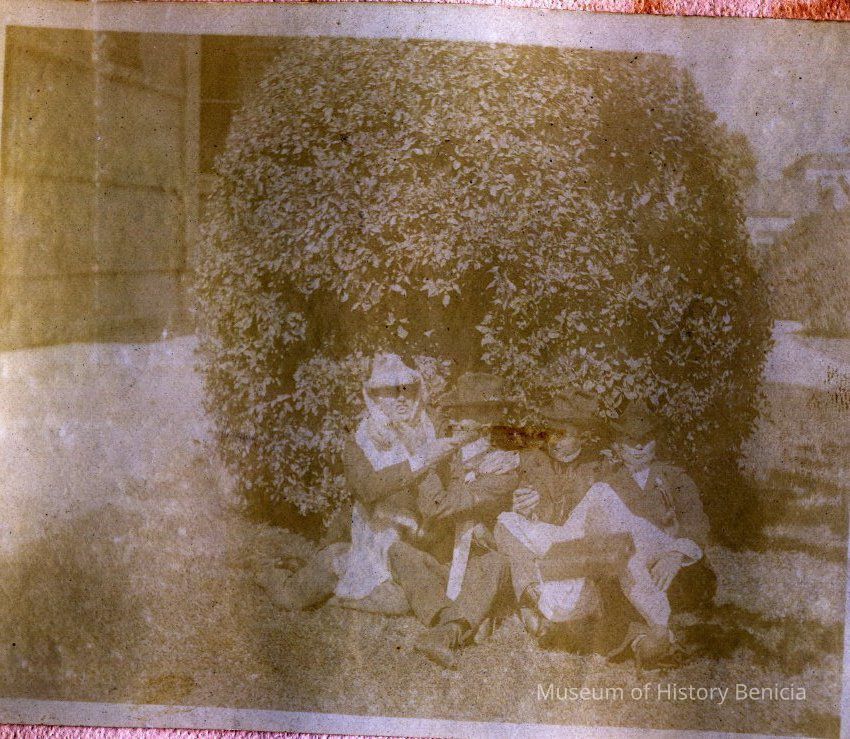 Photo album originally belonging to Allerta Ives (04/1884 - 05/31/1954) of Benicia. Contains mostly pictures of owner's family and friends, but also contains some views of Benicia. Alberta Ives father was Edward H Ives (1858/1863) who in 1900 was a professional studio photographer in Benicia (EH Ives Art Studio). Alberta worked as a teacher in Alameda before marrying Walter M Christie about 1913.
