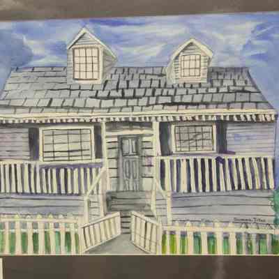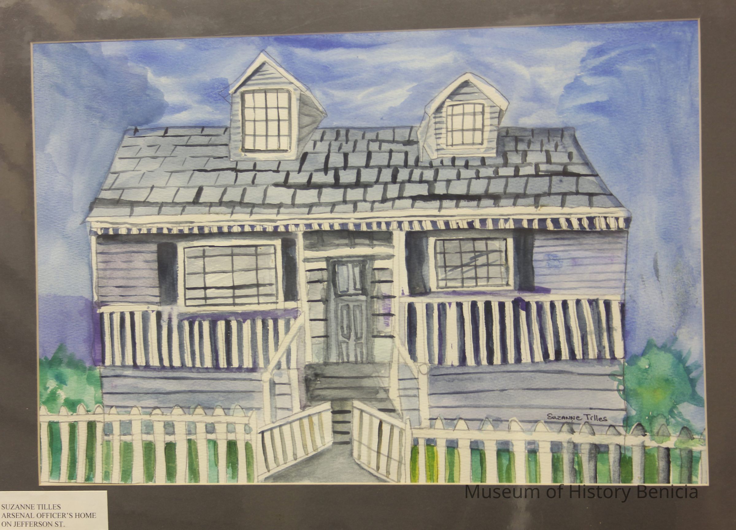 "A Civil War Home" watercolor painting done by Suzanne Tilles in 1995, a Benicia Middle School student matted and mounted on foamcore
