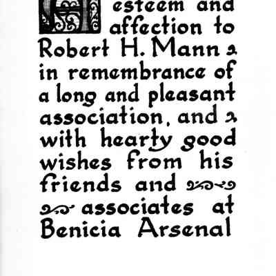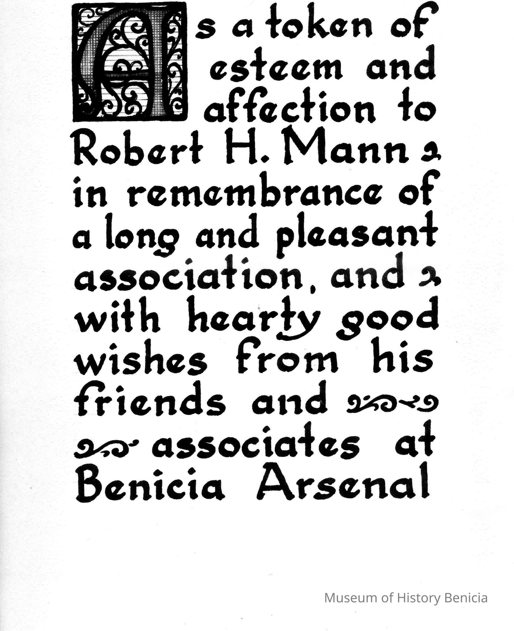 A Tribute to Robet H. Mann Benicia Arsenal Nov. 27, 1945Entry/Object ID