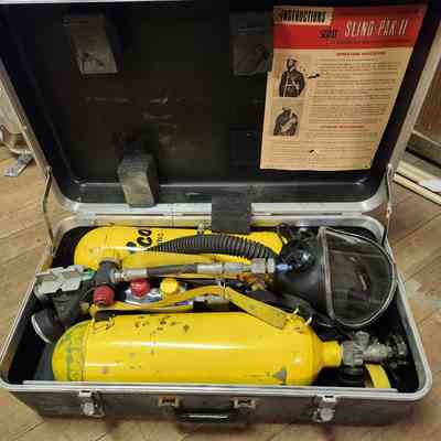Breathing air mask Kit in carrying case for Scott Air Pak Sling Pak II two yellow tanks, mask and regulator.