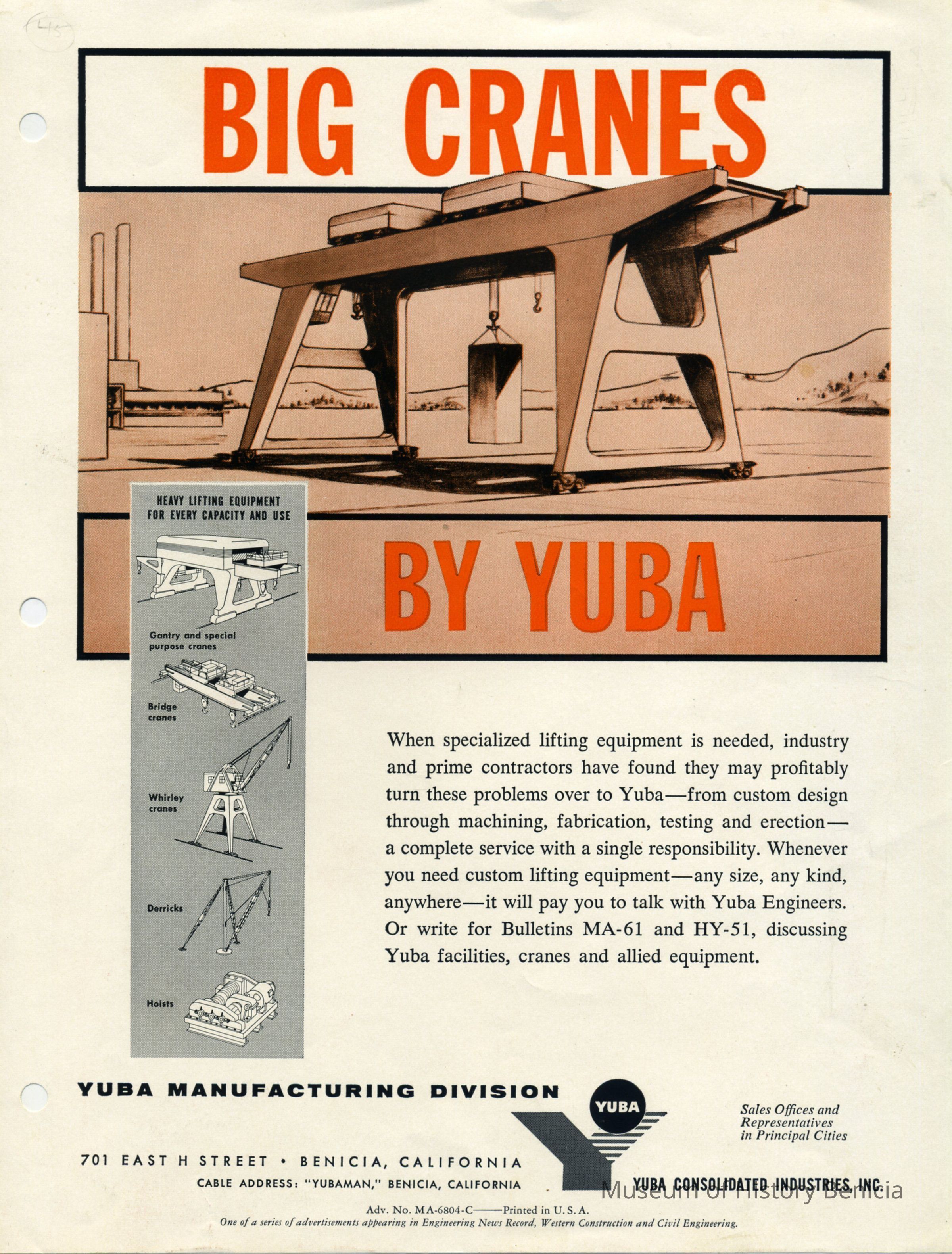 Advertisement for Big Cranes by Yuba