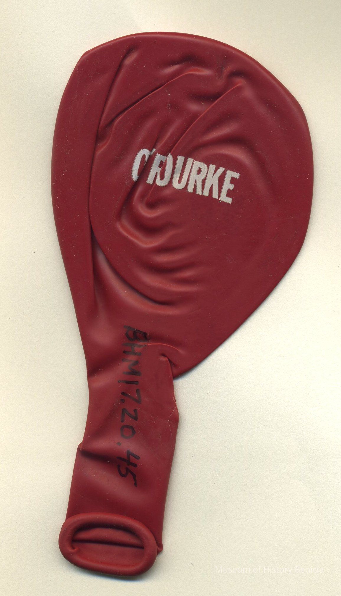 Political Advertisement - Campaign handout - Balloon for Marilyn O'Rourke's run for mayor;