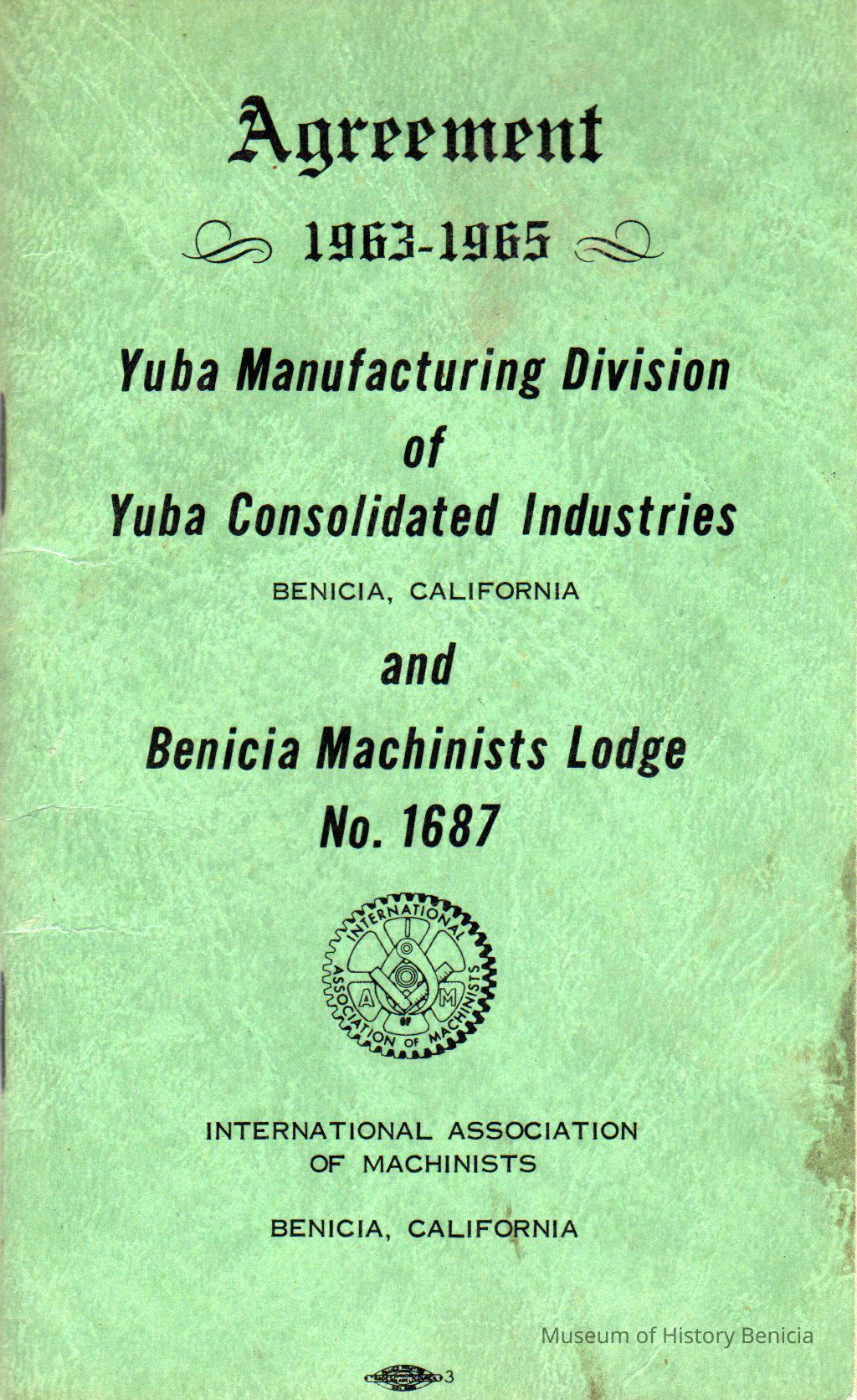 Agreement 1963-1965 Yuba Manufacturing Division of Yuba Consolidated Industries, Benicia California and Benicia Machinists Lodge No. 1687. International Association of Machinists