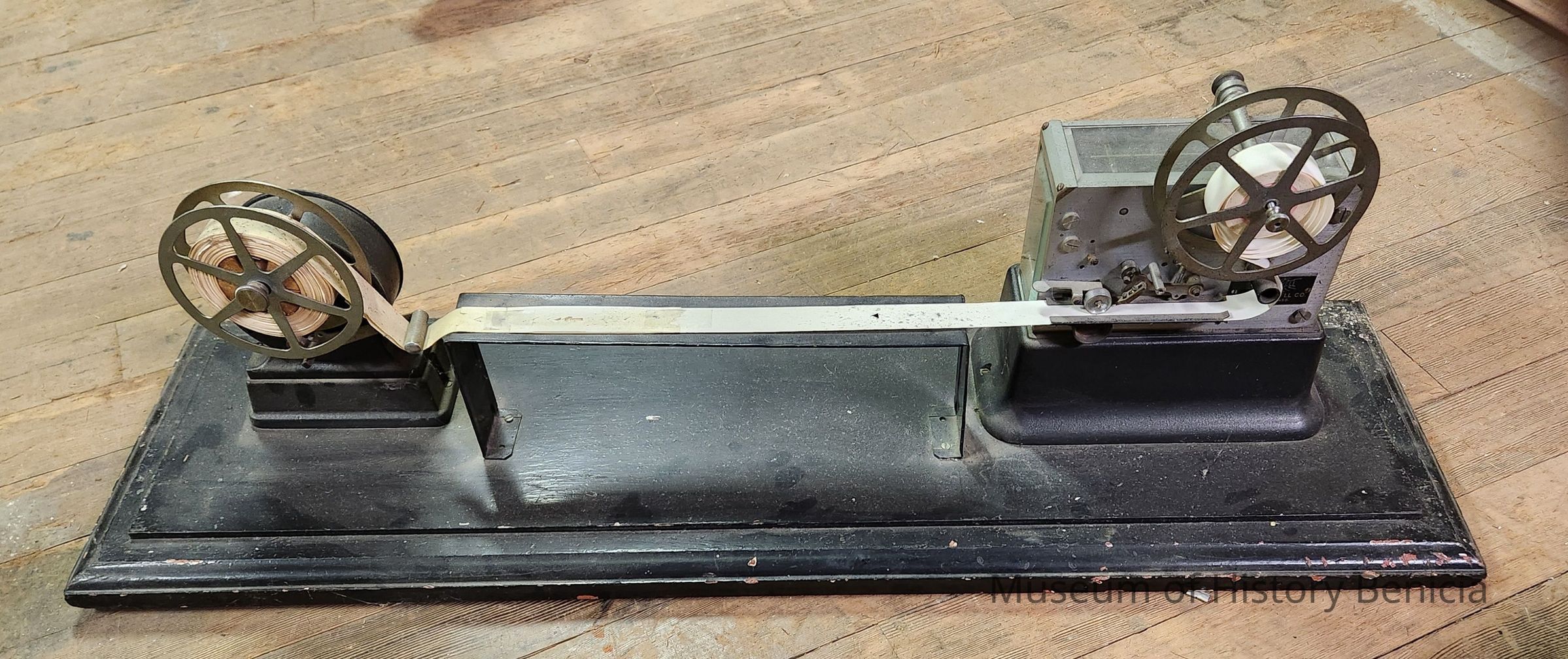 Fire alarm register for alarm receipt in fire station. Provides stamped tape to visually verify alarm box number. It is from the Benicia Arsenal Fire Department.