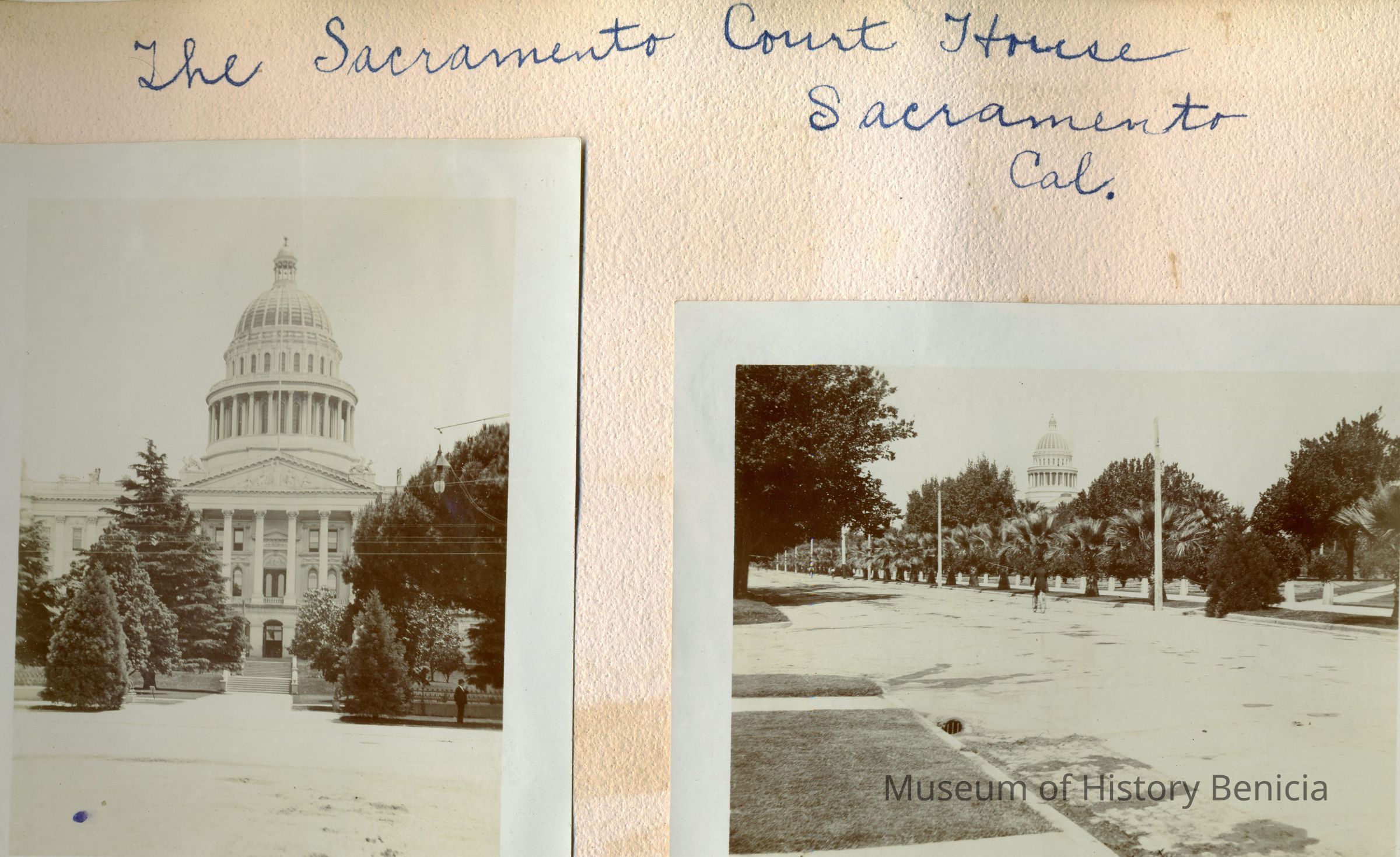This is a scan of one of the pages in that album. It shows the "Sacramento Court House" in Sacramento.Collection