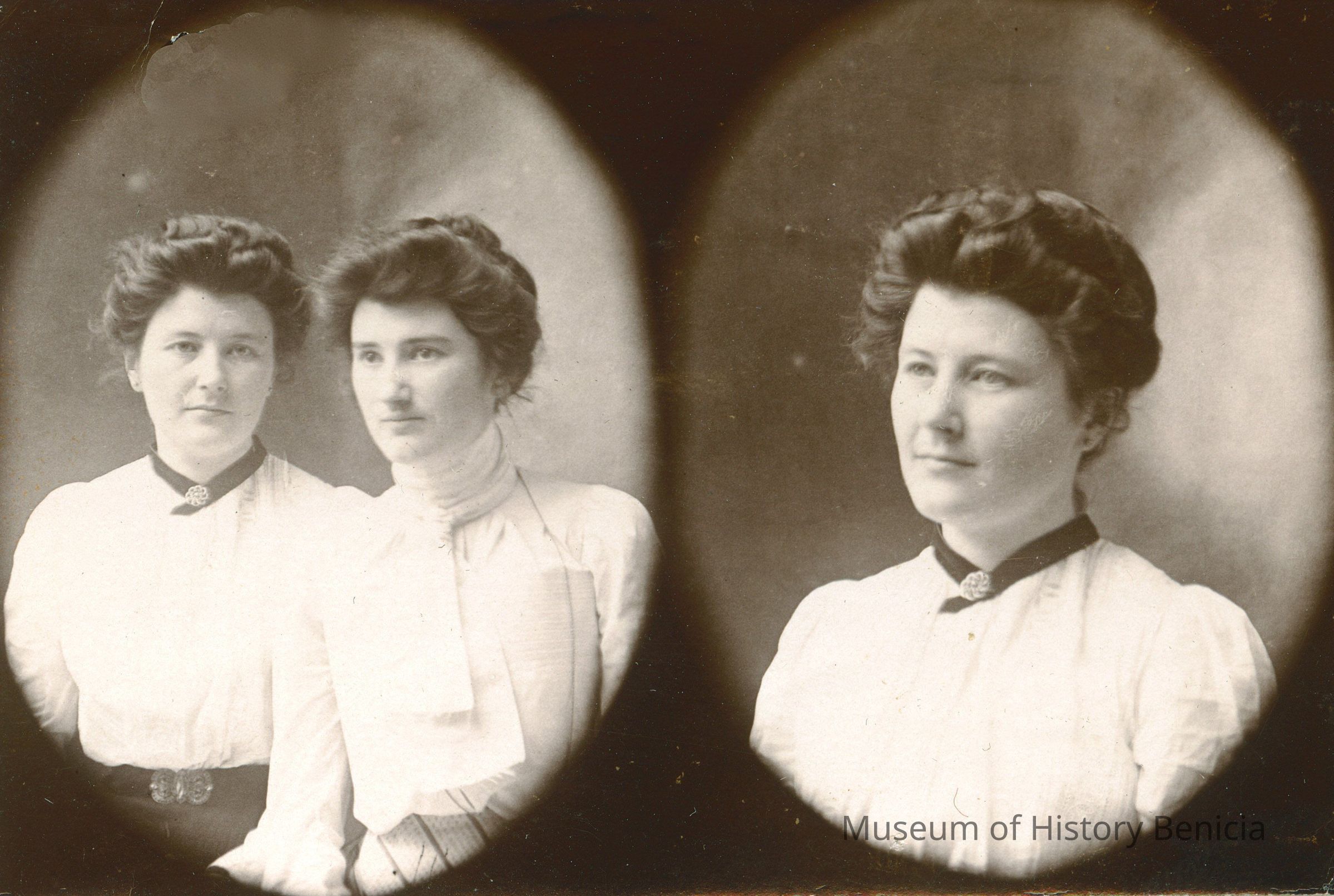 Multiple image from a stereo type camera of two women in one frame and one in the other.
