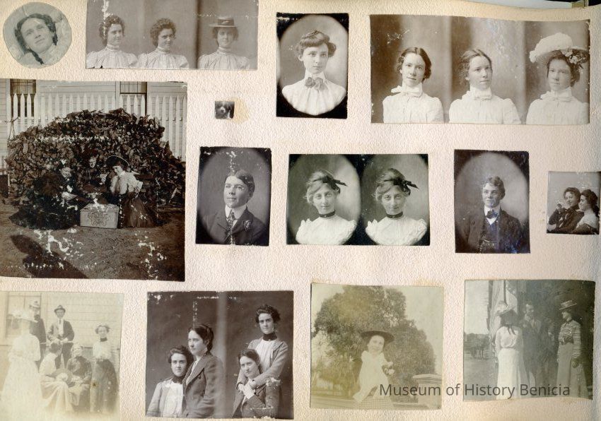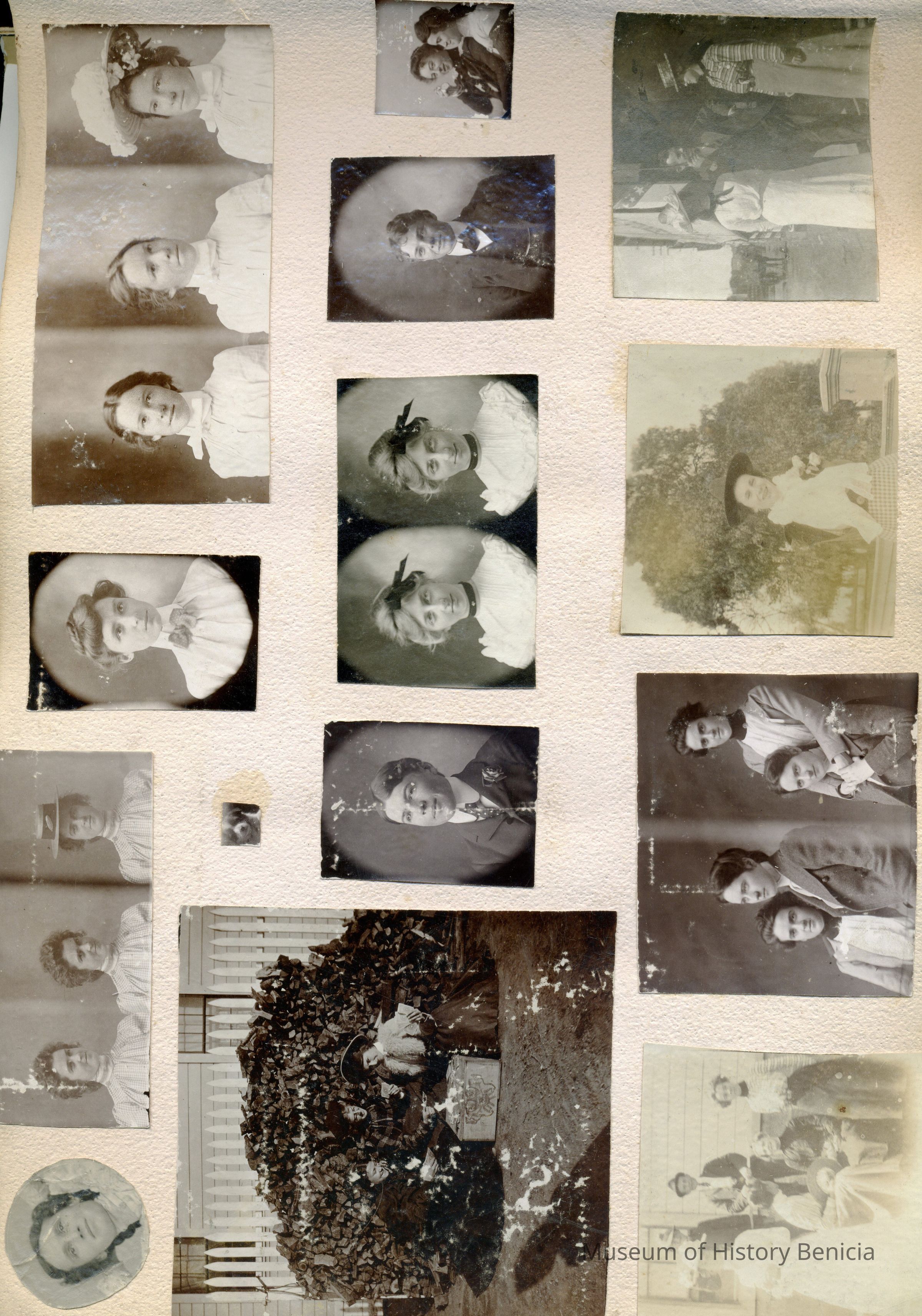 Photo album originally belonging to Allerta Ives (04/1884 - 05/31/1954) of Benicia. Contains mostly pictures of owner's family and friends, but also contains some views of Benicia. Alberta Ives father was Edward H Ives (1858/1863) who in 1900 was a professional studio photographer in Benicia (EH Ives Art Studio). Alberta worked as a teacher in Alameda before marrying Walter M Christie about 1913.