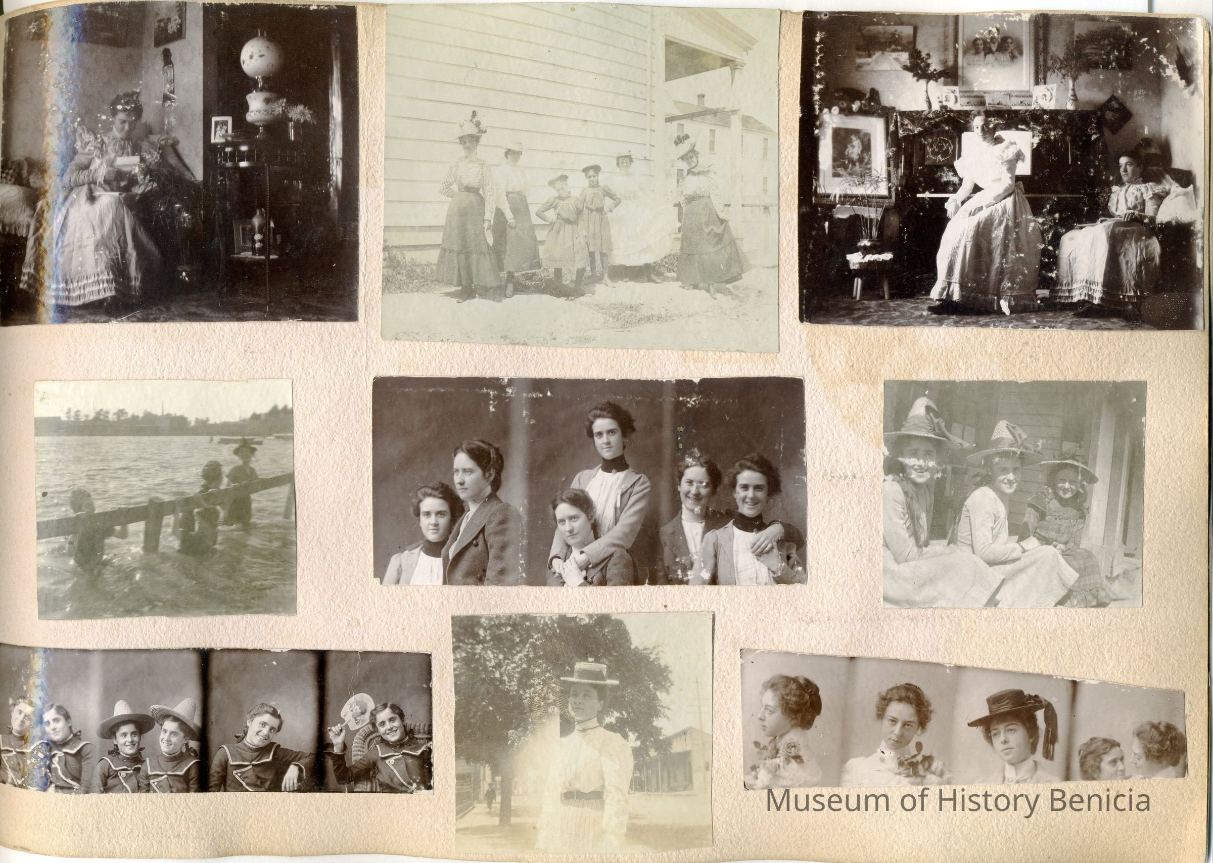 Photo album originally belonging to Allerta Ives (04/1884 - 05/31/1954) of Benicia. Contains mostly pictures of owner's family and friends, but also contains some views of Benicia. Alberta Ives father was Edward H Ives (1858/1863) who in 1900 was a professional studio photographer in Benicia (EH Ives Art Studio). Alberta worked as a teacher in Alameda before marrying Walter M Christie about 1913.