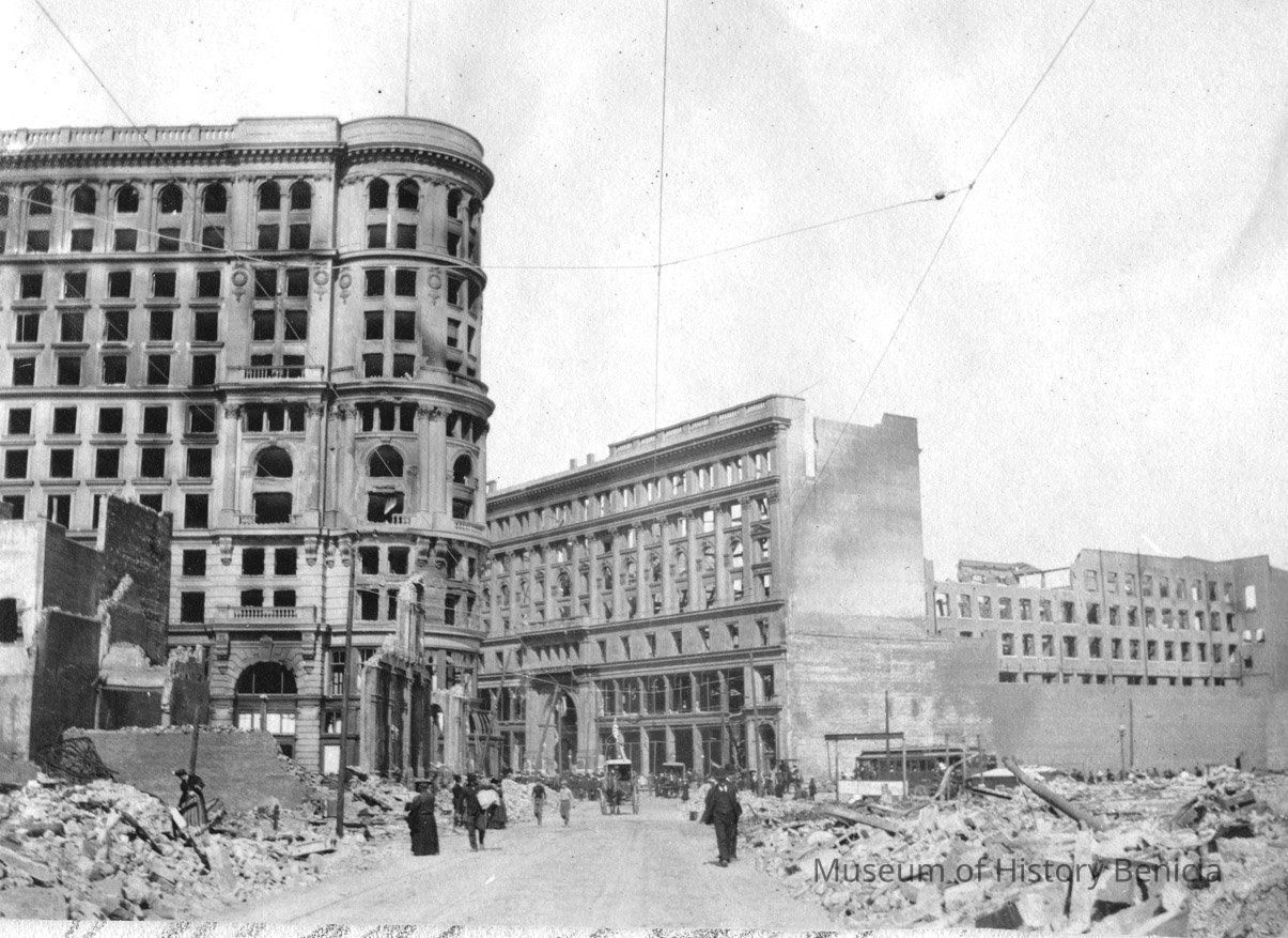 The Flood Building was one of the few buildings to survive both the devastation of the 1906 earthquake, and the subsequent great fire. The steel frame structure with brick curtain walls covered in gray Colusa sandstone proved to be substantial enough to withstand the most deadly forces of nature.