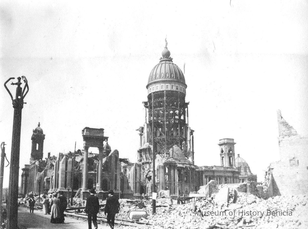 Page 28 photo 4 of a bound photo album with scenes of San Francisco after the 1906 earthquake and fire. This photo is attached to back of photo 2006.013.0007.27d and is in that envelope.