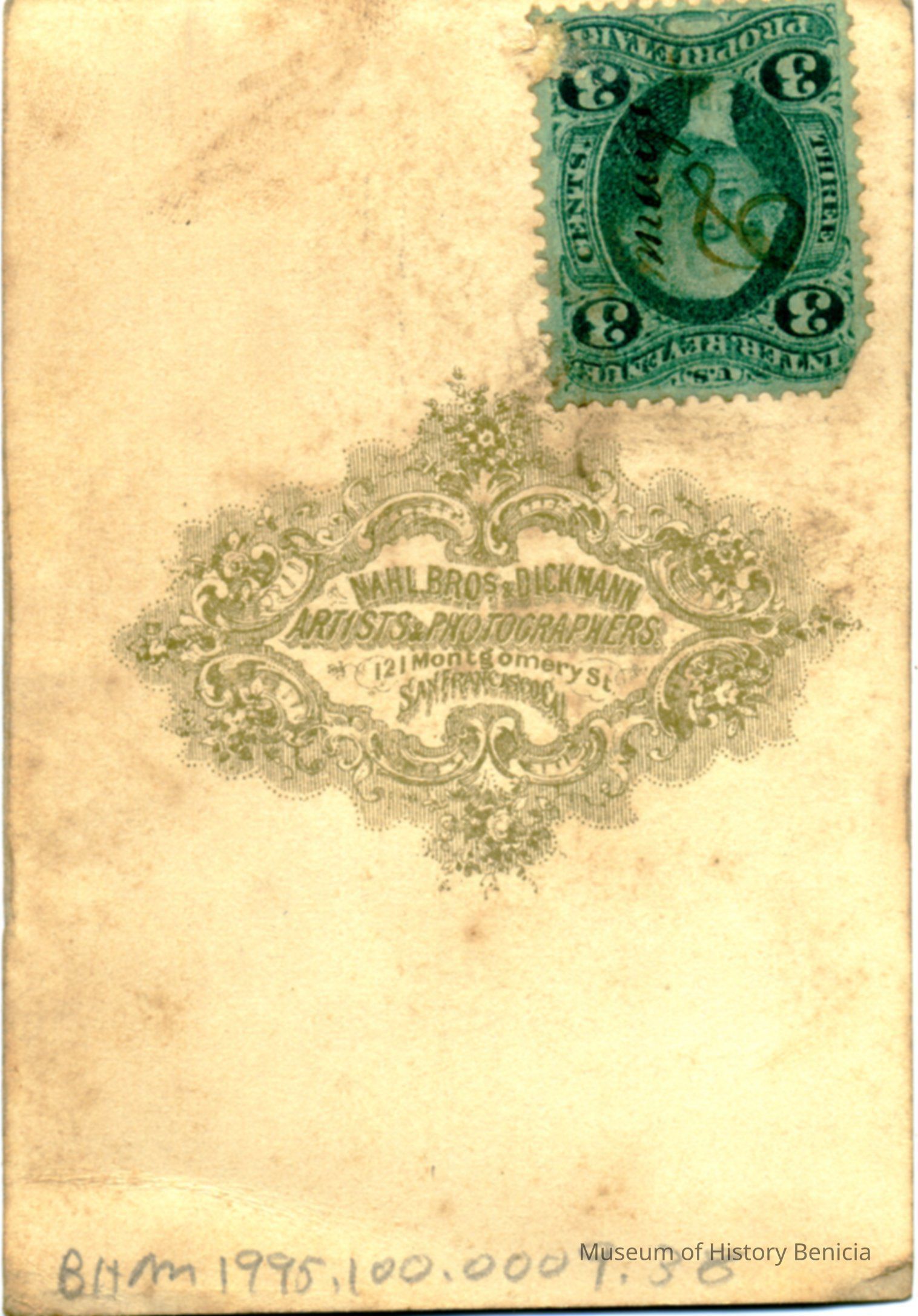 There is a 3 cent stamp on the back. It is some kind of revenue stamp.