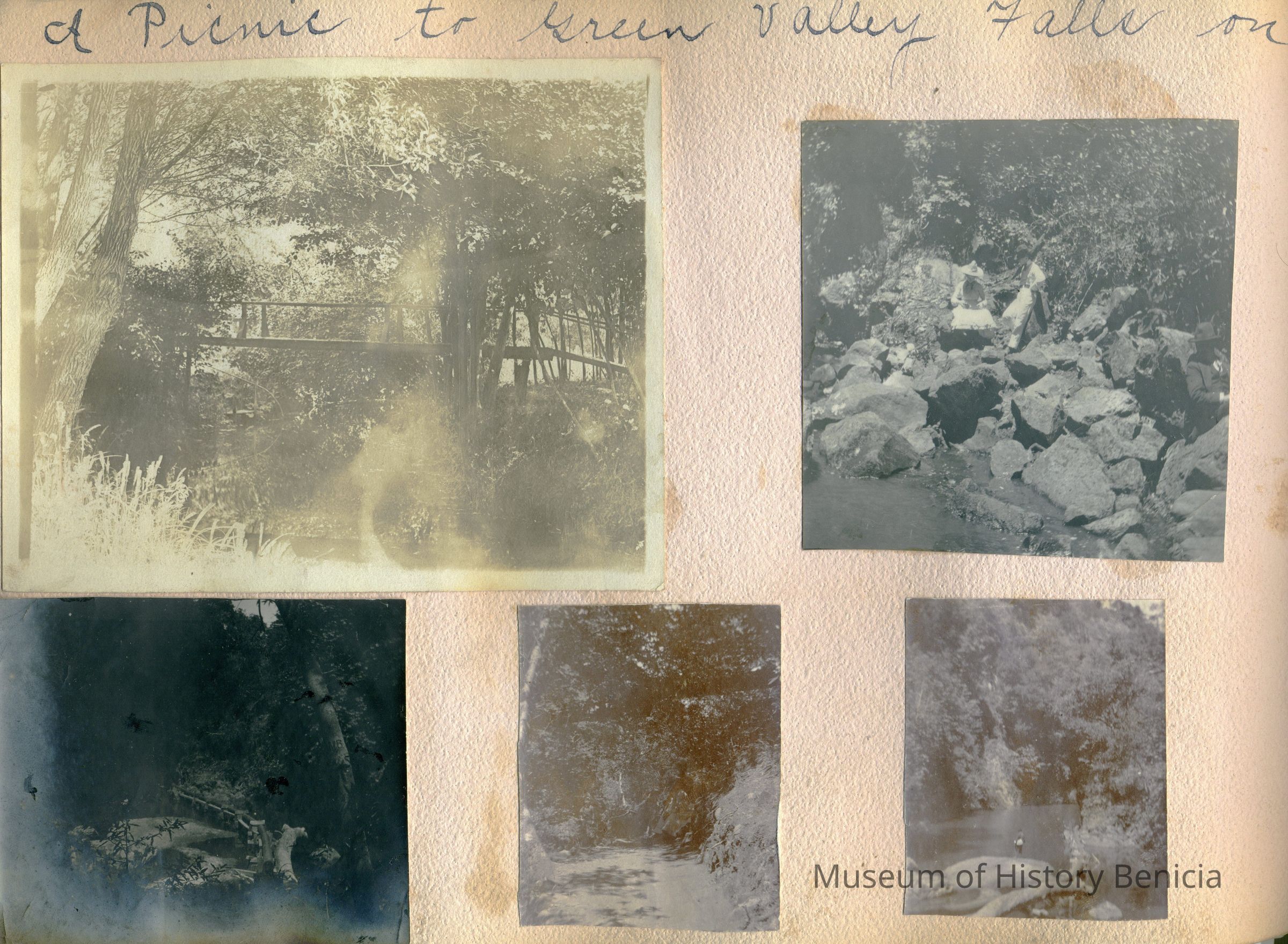 This is a scan of one of the pages in that album. It shows views of Green Valley Falls.Collection