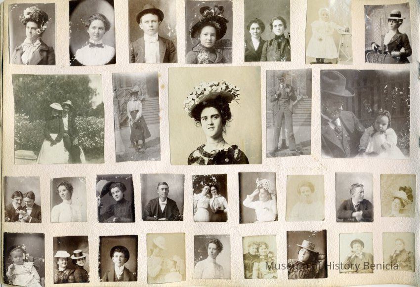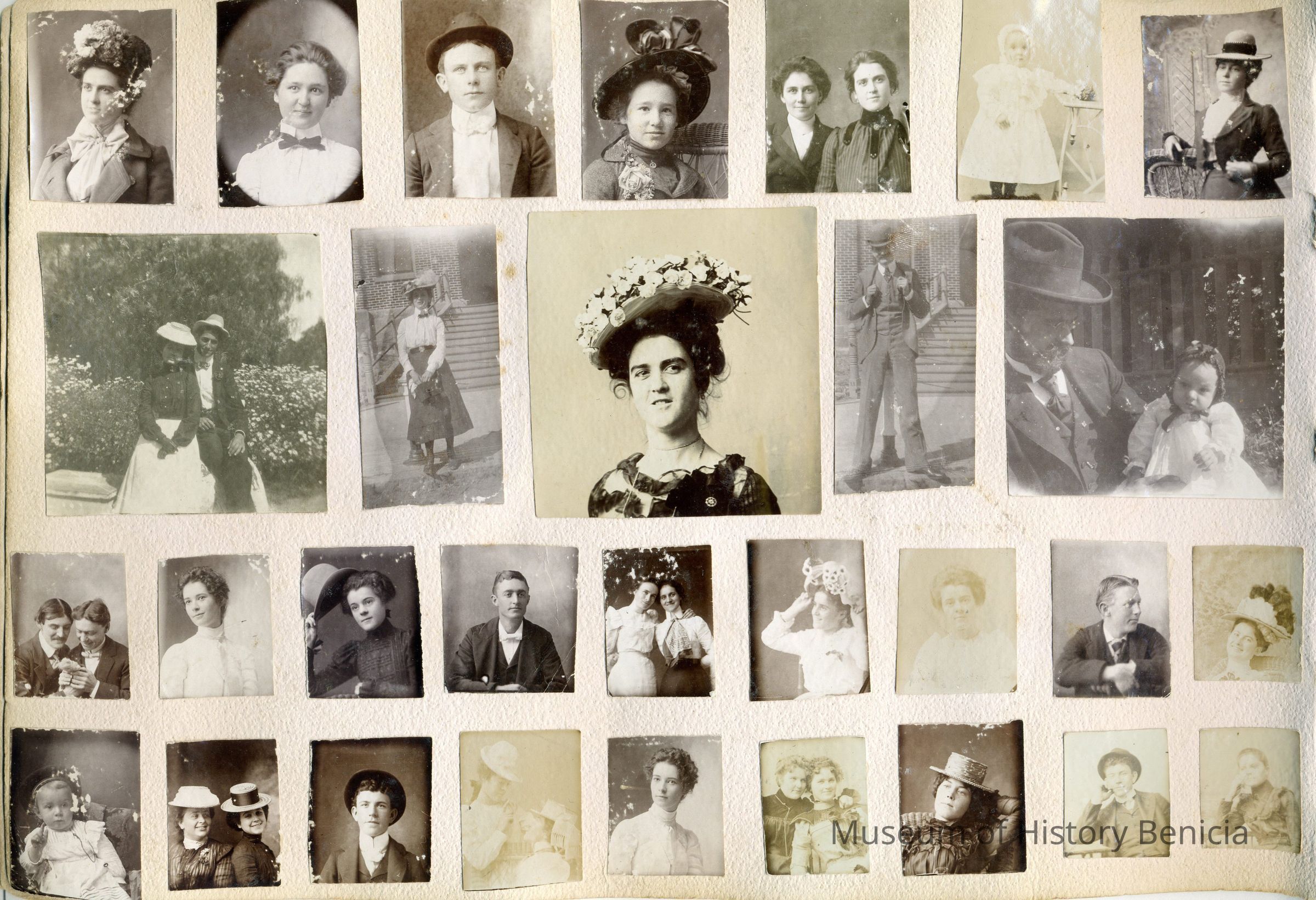 Photo album originally belonging to Allerta Ives (04/1884 - 05/31/1954) of Benicia. Contains mostly pictures of owner's family and friends, but also contains some views of Benicia. Alberta Ives father was Edward H Ives (1858/1863) who in 1900 was a professional studio photographer in Benicia (EH Ives Art Studio). Alberta worked as a teacher in Alameda before marrying Walter M Christie about 1913.