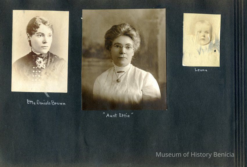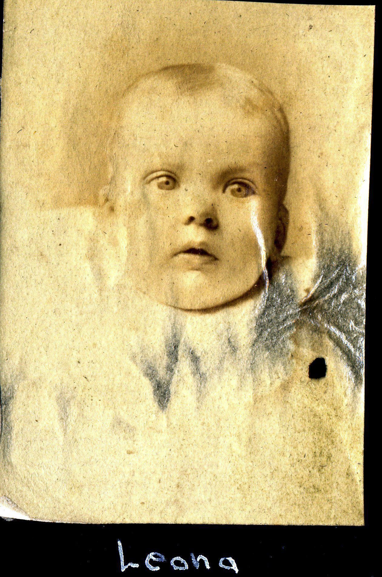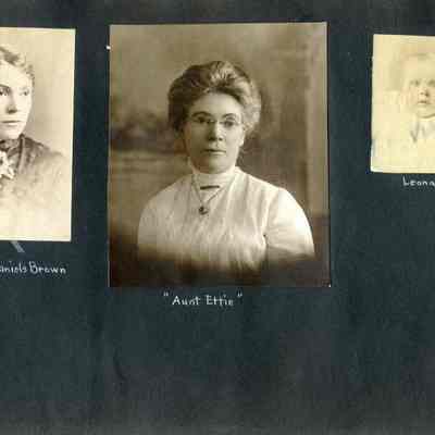 Photo album with a tooled leather cover that has the word "photographs" on the front and several colored diamonds down each side. The photo album is from the Parker/Teale families. Most pages have names written under the photos. The photos are so well documented and very firmly glued into the album that it is being kept together and photos are generally not being removed from the album.