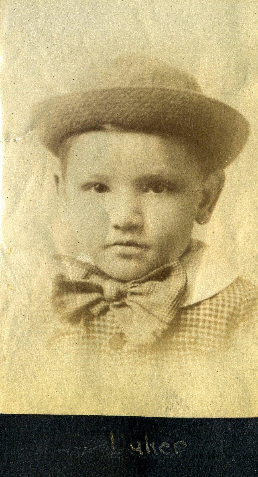 Photo album with a tooled leather cover that has the word "photographs" on the front and several colored diamonds down each side. The photo album is from the Parker/Teale families. Most pages have names written under the photos. The photos are so well documented and very firmly glued into the album that it is being kept together and photos are generally not being removed from the album.