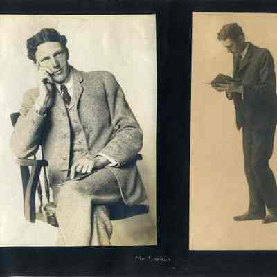 Photo album with a tooled leather cover that has the word "photographs" on the front and several colored diamonds down each side. The photo album is from the Parker/Teale families. Most pages have names written under the photos. The photos are so well documented and very firmly glued into the album that it is being kept together and photos are generally not being removed from the album.