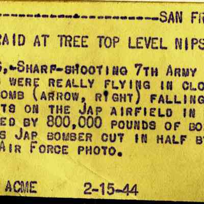 This is a scrapbook/photo album of World War II news wire photos and news text of the war in the Pacific. It features some graphic photos of prisoners of war and soldiers wounded or killed in action. None of the photos will be uploaded to our online archive and will only be available on the Museum's computers.