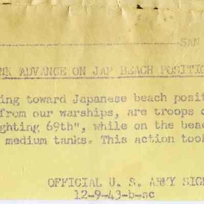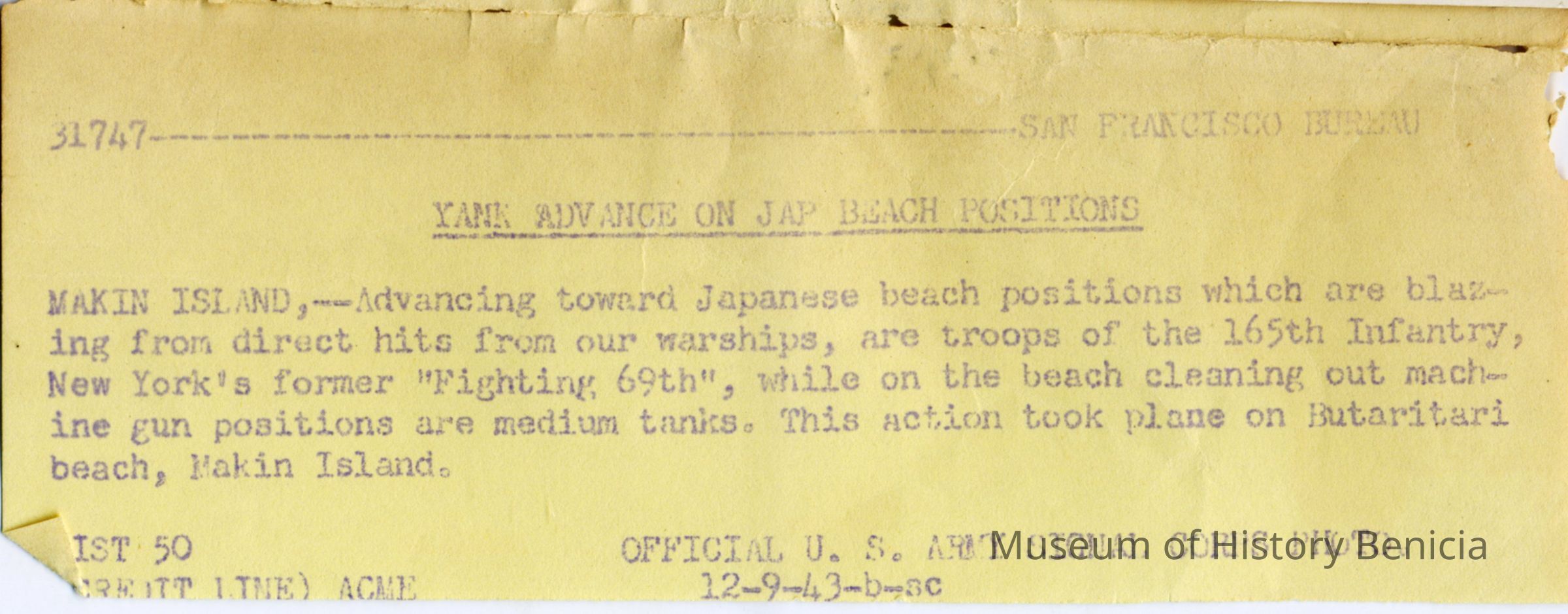 This is a scrapbook/photo album of World War II news wire photos and news text of the war in the Pacific. It features some graphic photos of prisoners of war and soldiers wounded or killed in action. None of the photos will be uploaded to our online archive and will only be available on the Museum's computers.