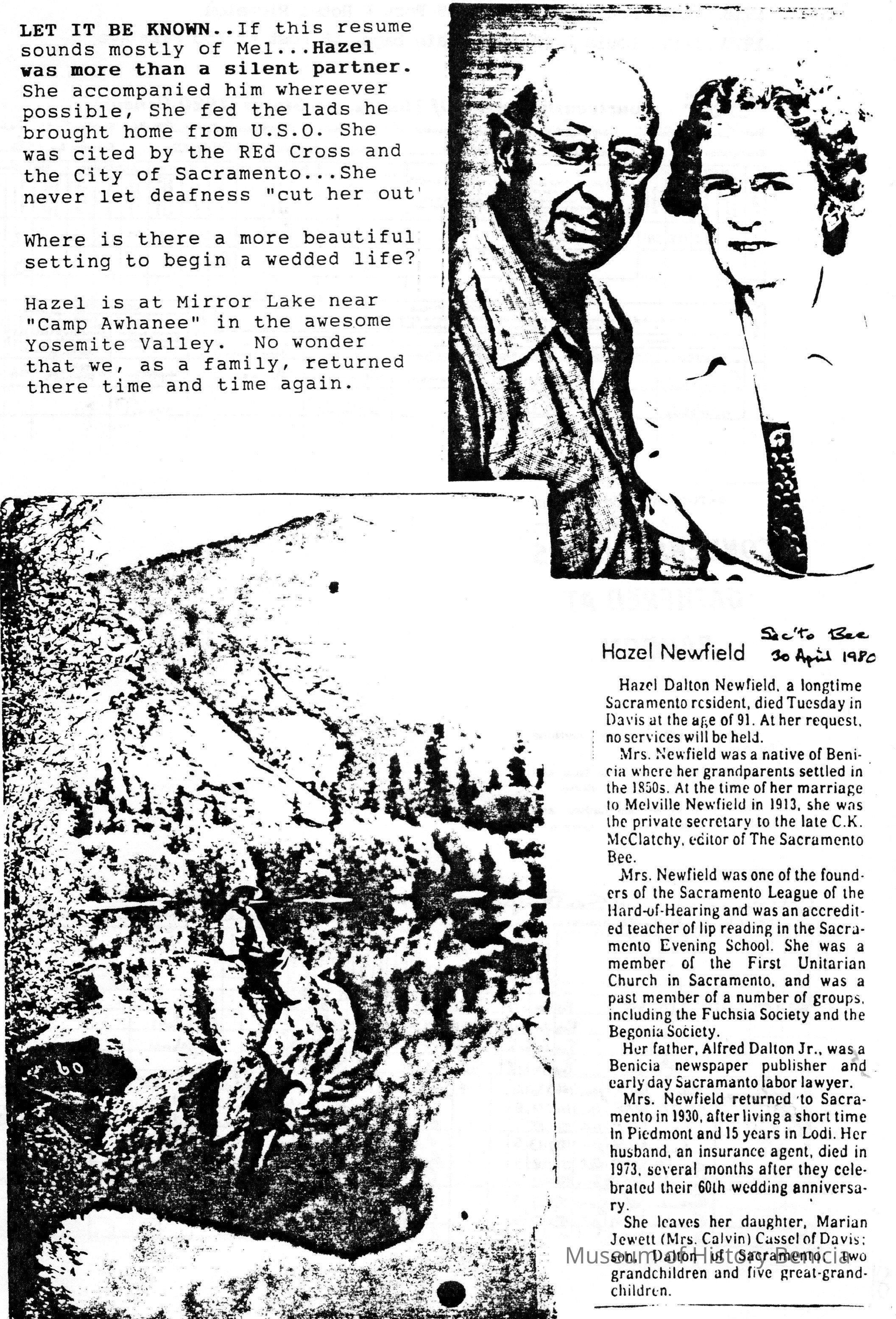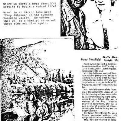 Hazel Dalton was the daughter of Alfred Dalton Jr. She was born in 1889 and died in 1980 in Yolo County, CA. (See her family tree and obituary in attached images.)Collection
