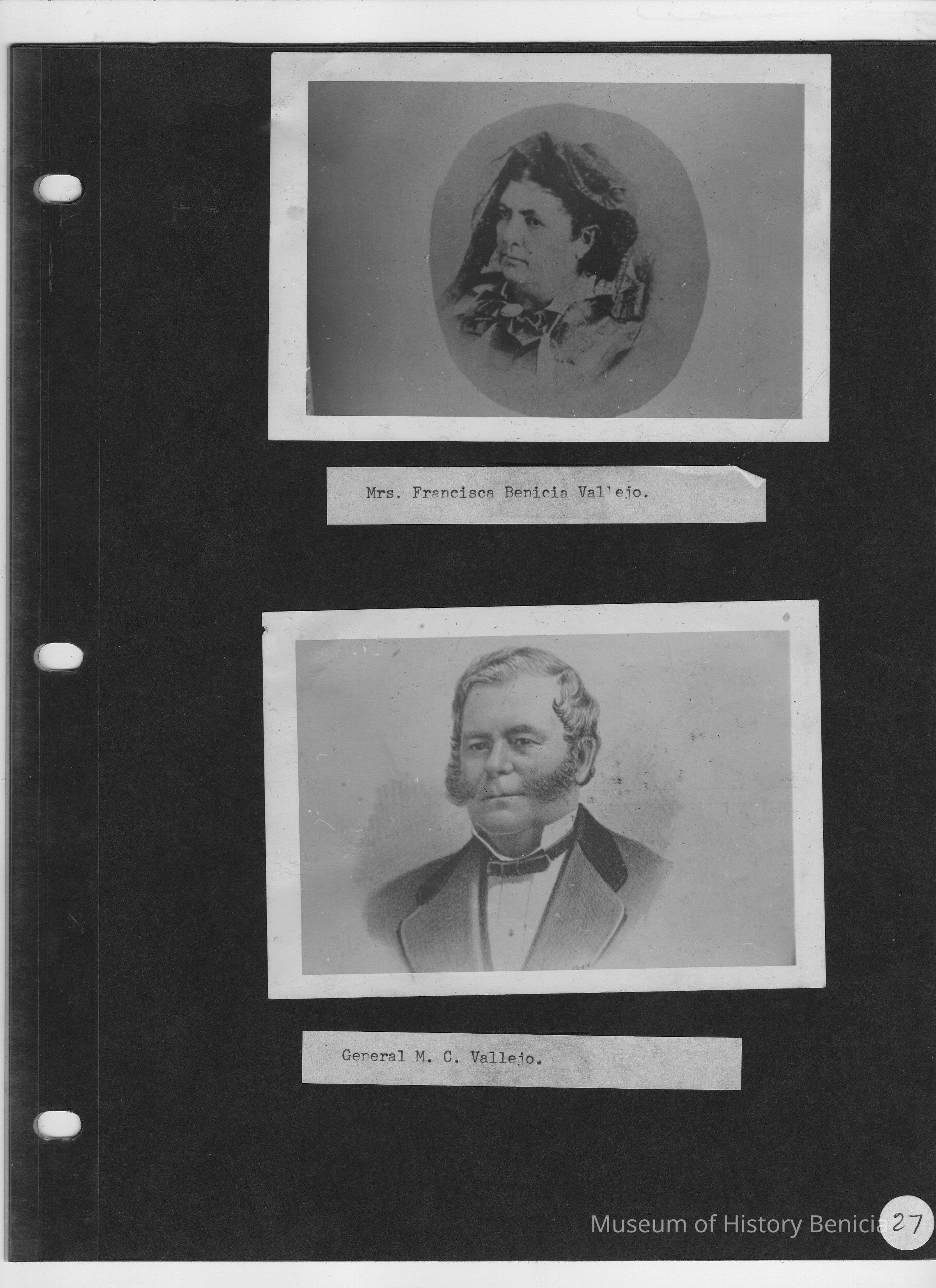 Page contains two B/W photos. Top photo is of Mrs. Francisca Benicia Vallejo; bottom photo is of General Mariano Vallejo.