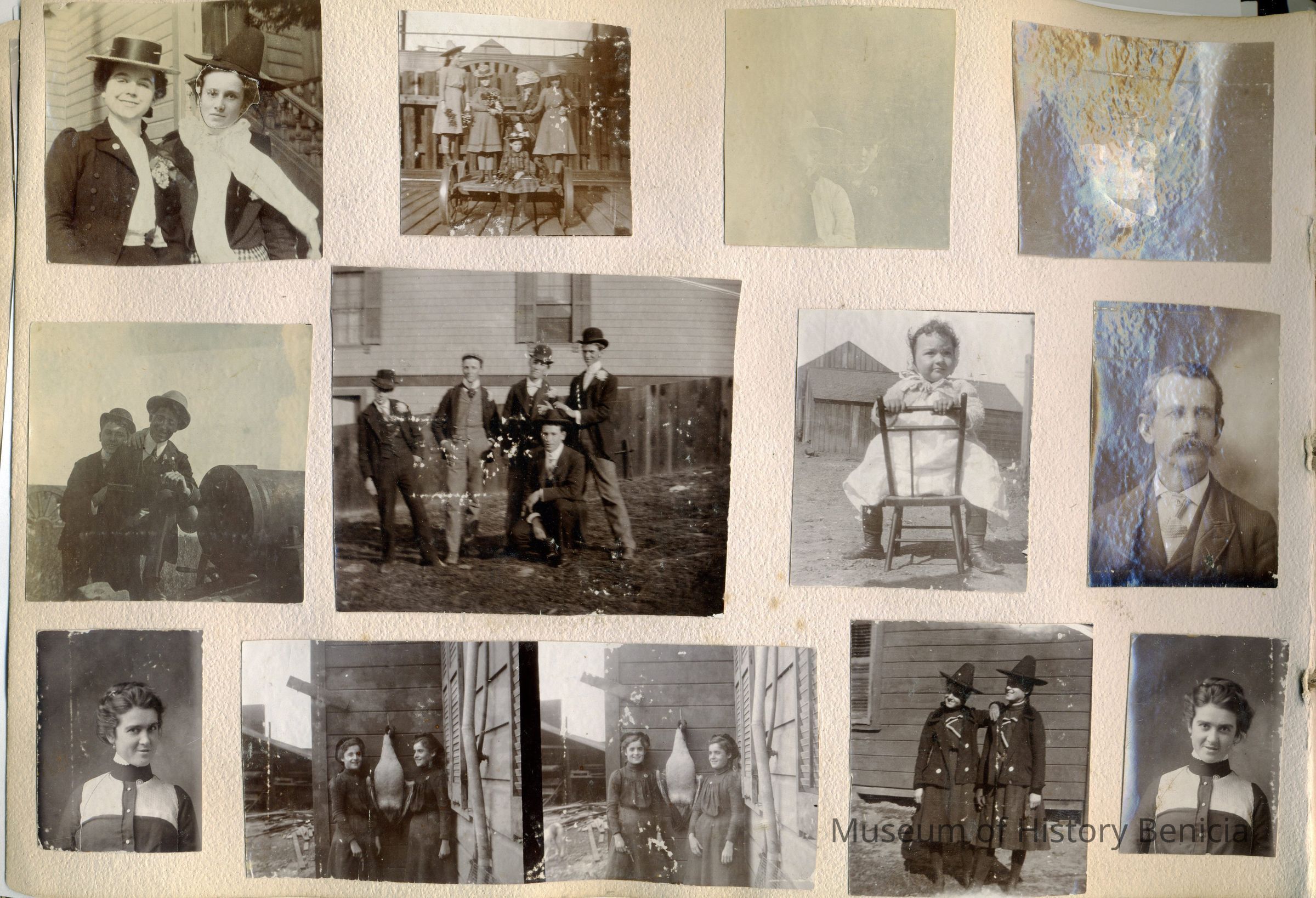 Photo album originally belonging to Allerta Ives (04/1884 - 05/31/1954) of Benicia. Contains mostly pictures of owner's family and friends, but also contains some views of Benicia. Alberta Ives father was Edward H Ives (1858/1863) who in 1900 was a professional studio photographer in Benicia (EH Ives Art Studio). Alberta worked as a teacher in Alameda before marrying Walter M Christie about 1913.