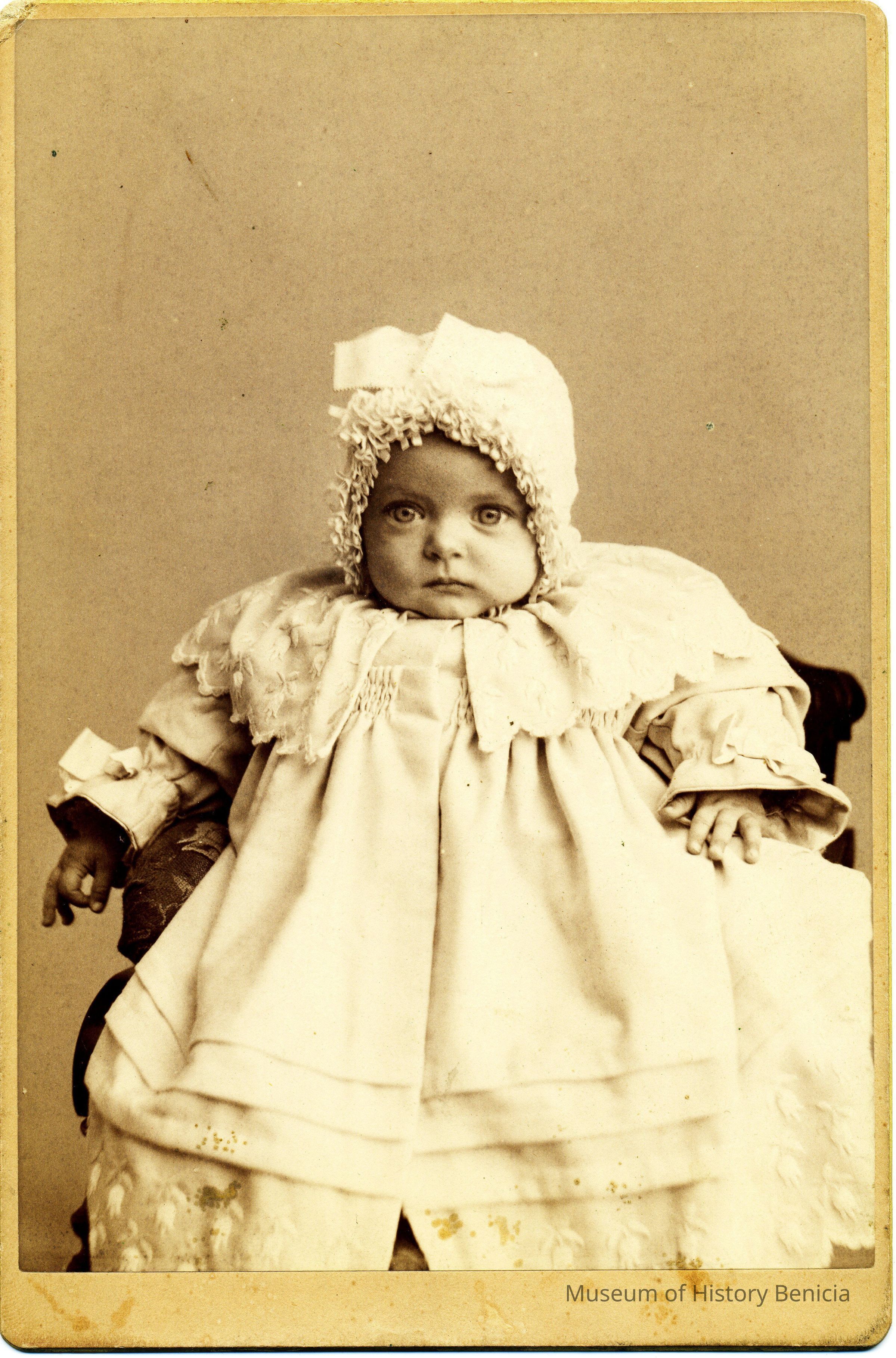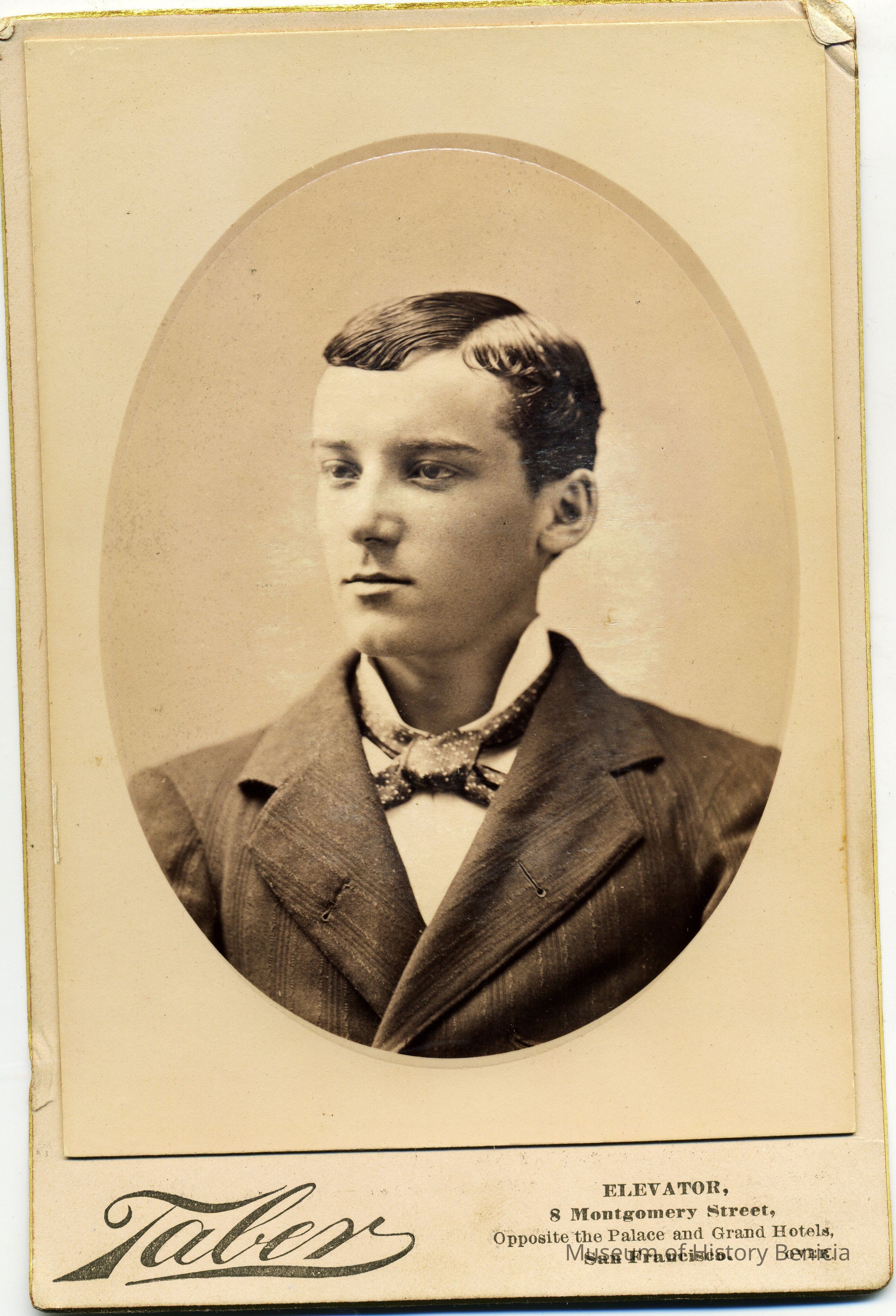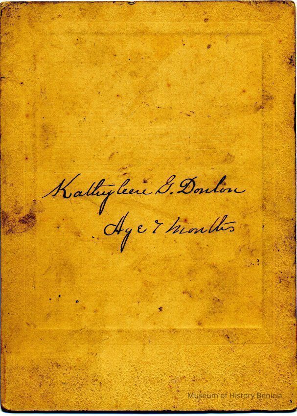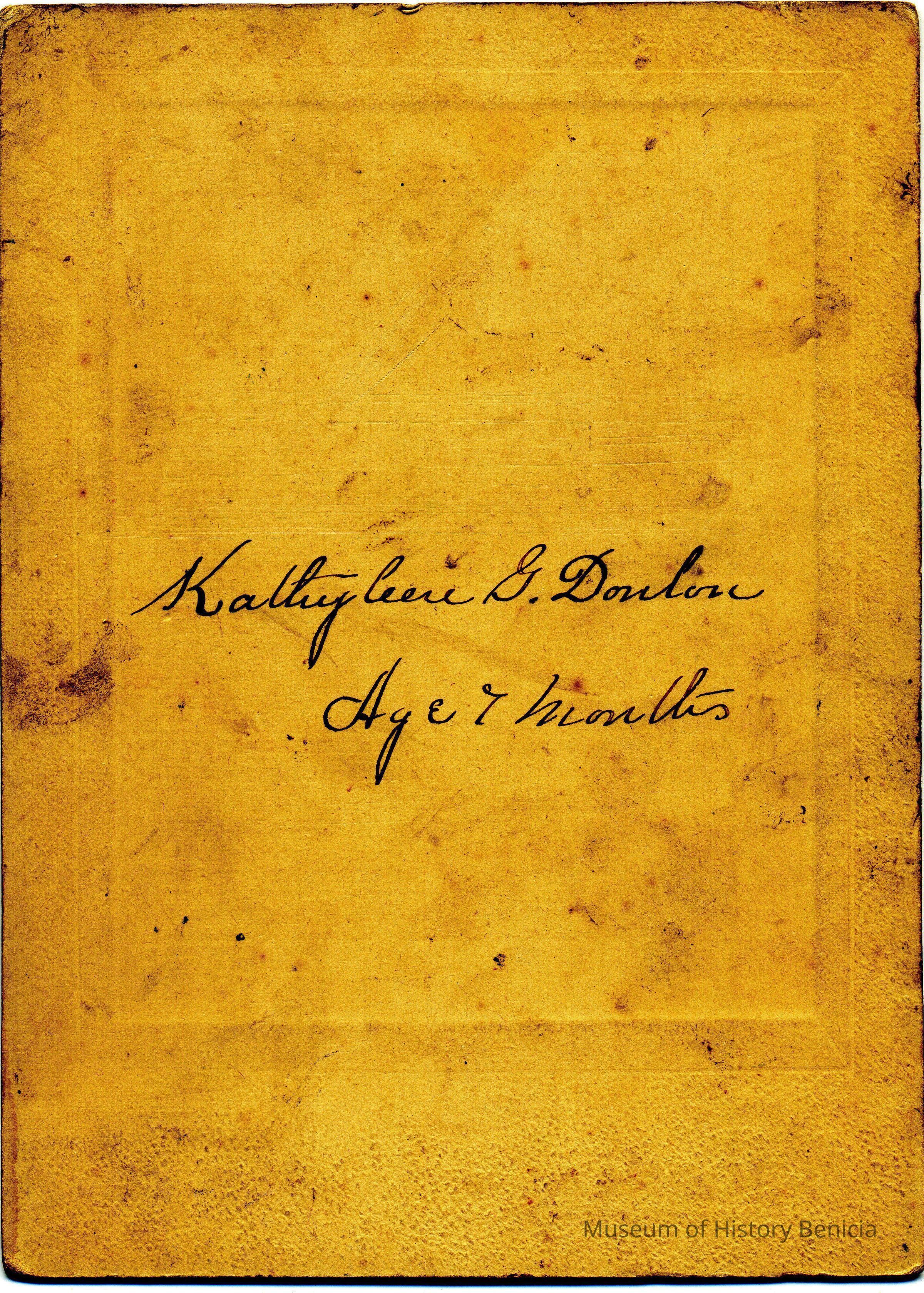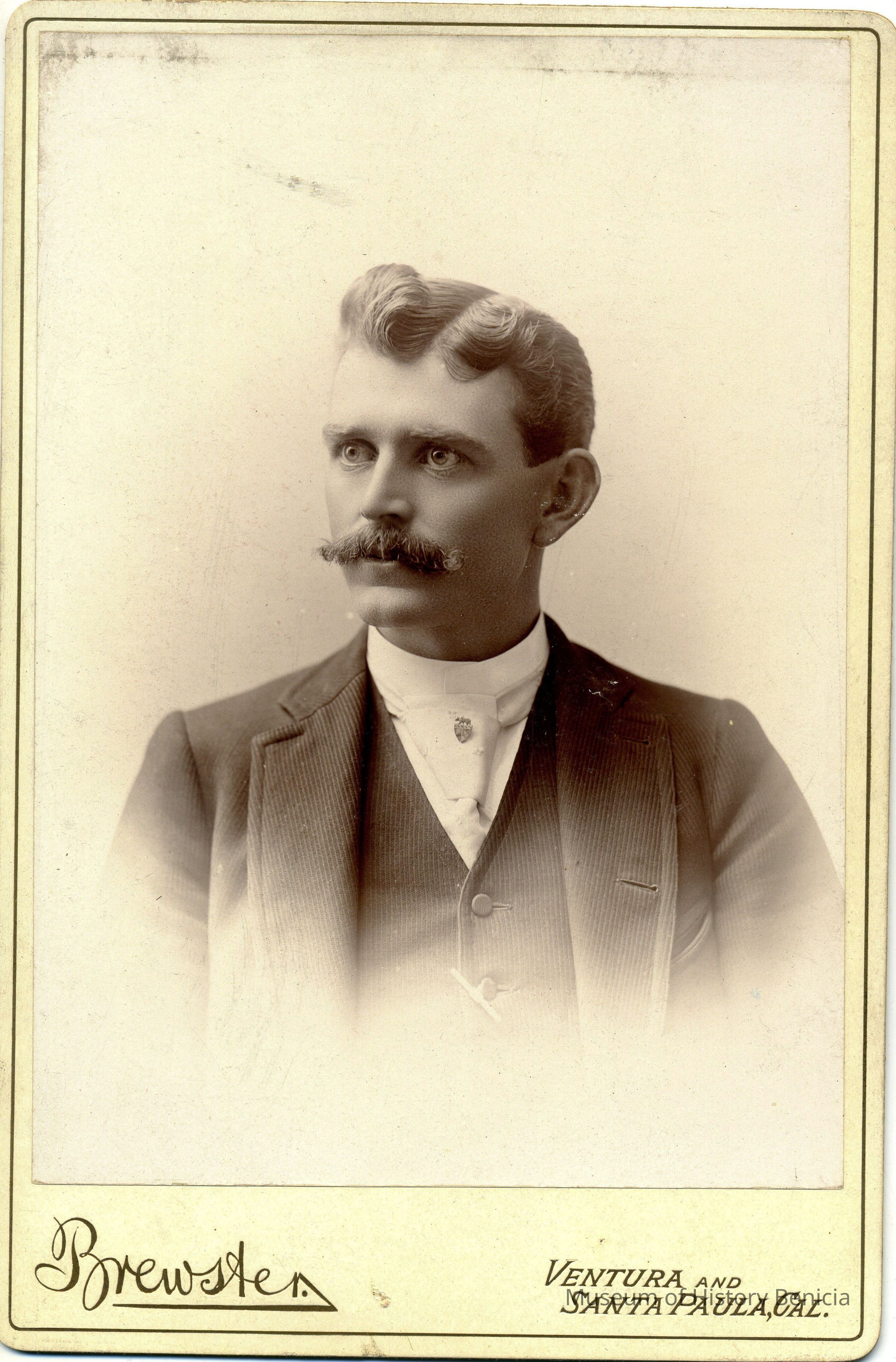 Photo album, red plush, brass chasp. Pages edged in gold leaf, album printed in golden flyleaf. 32 photos some inscribed "Brewster Ventura Cal"; or "Baulands, Brooklyn. Backing is completely separated from pages. Plush velvet worn. Some frames are split. Some photos are discolored.