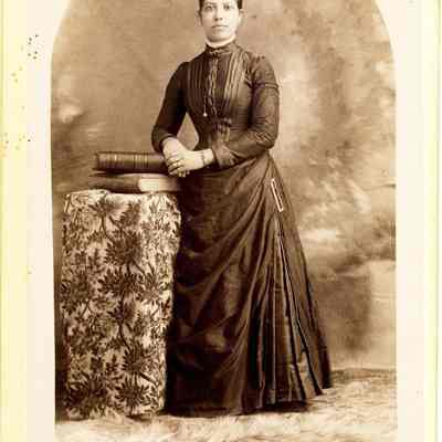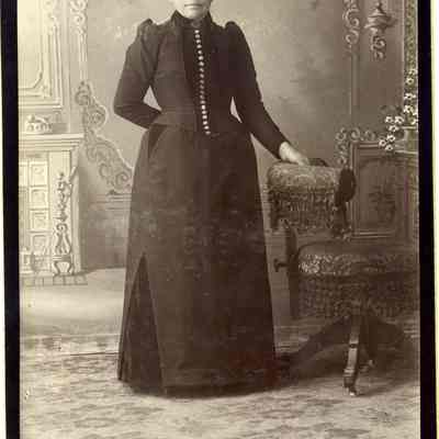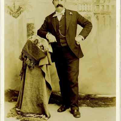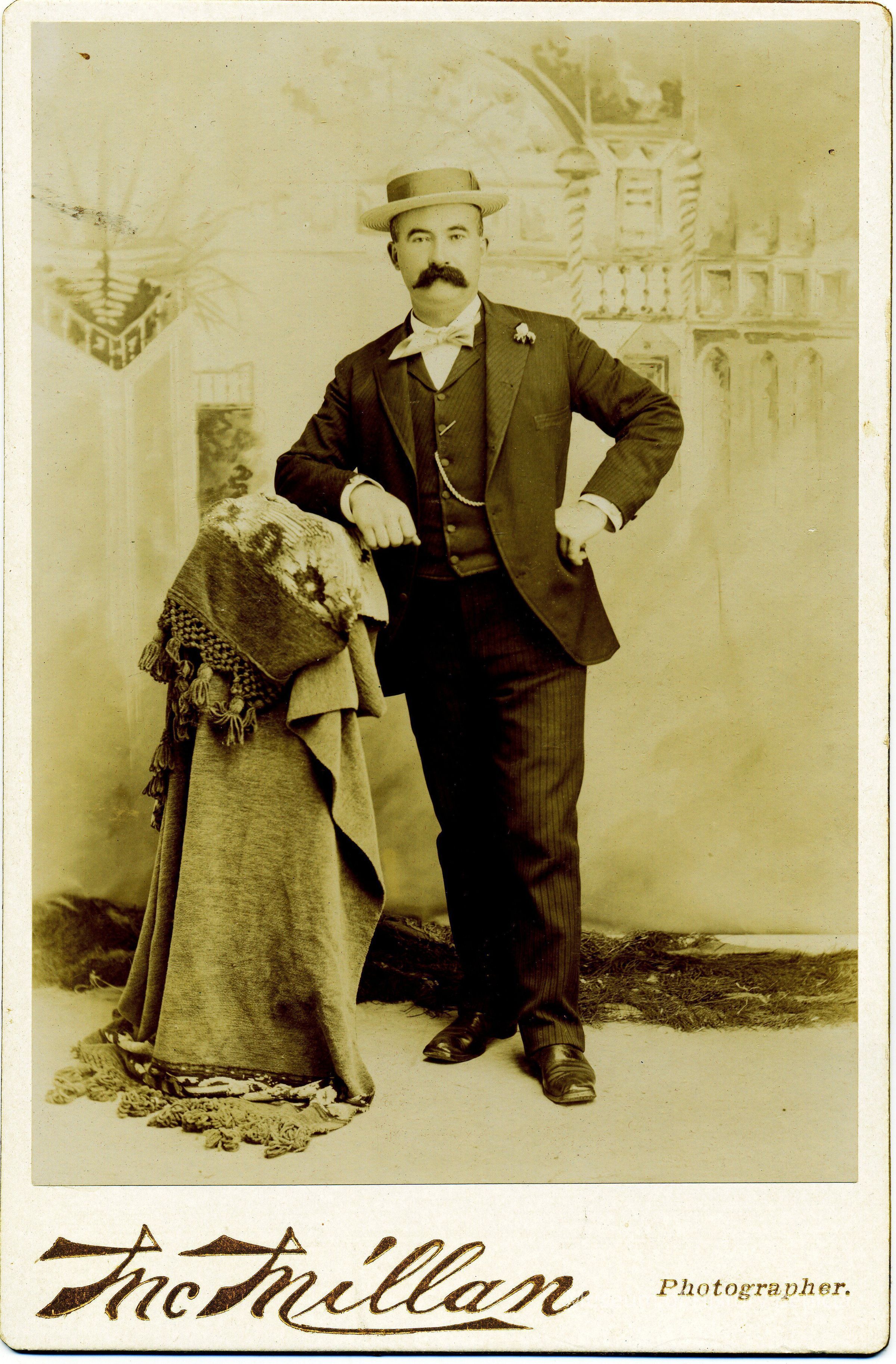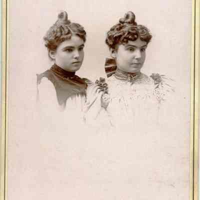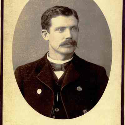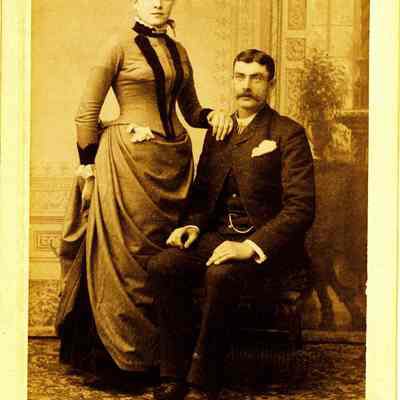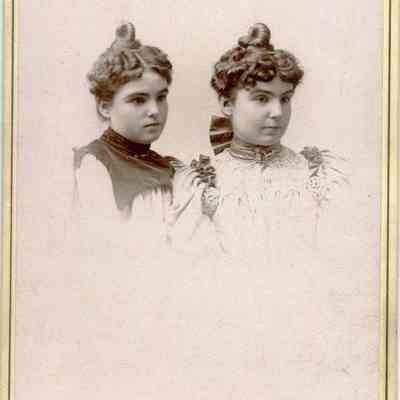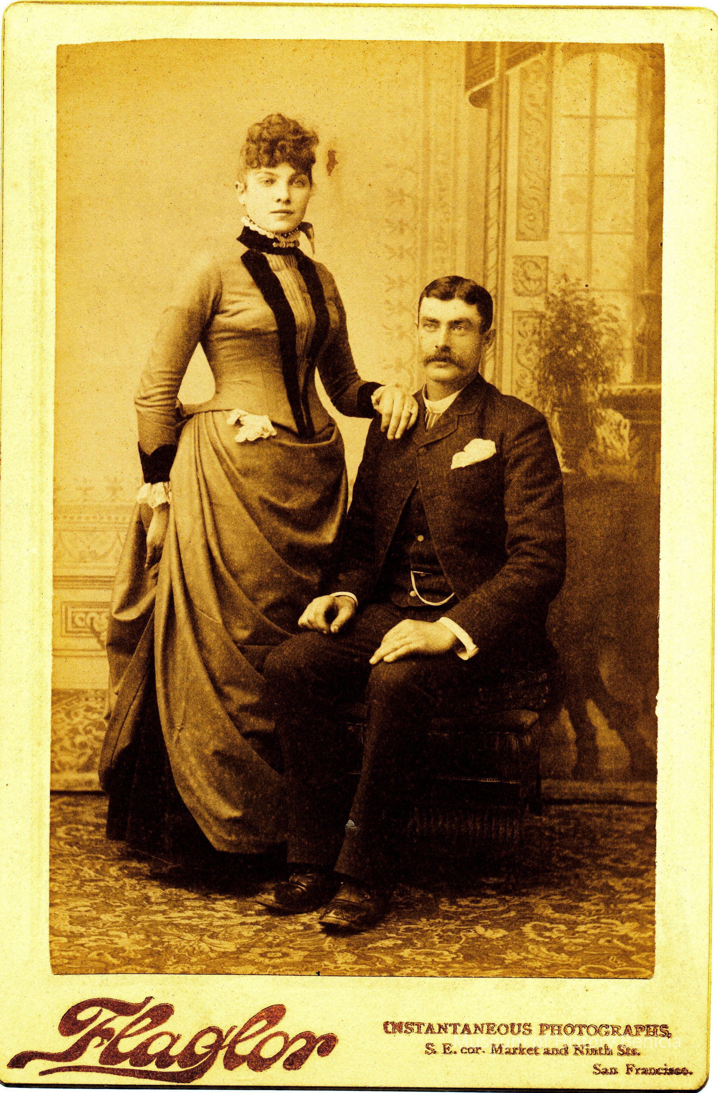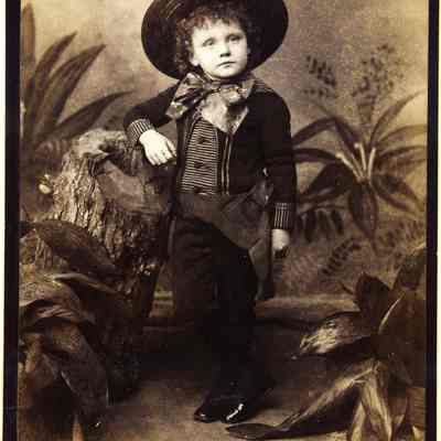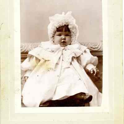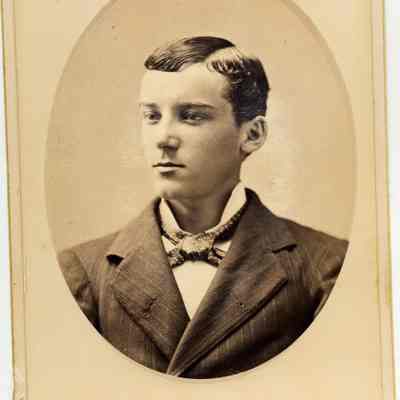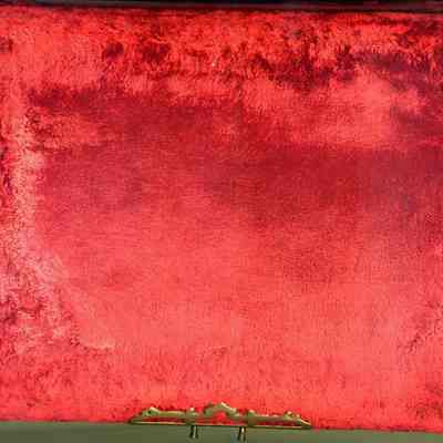 Photo album, red plush, brass chasp. Pages edged in gold leaf, album printed in golden flyleaf. 32 photos some inscribed "Brewster Ventura Cal"; or "Baulands, Brooklyn. Backing is completely separated from pages. Plush velvet worn. Some frames are split. Some photos are discolored.