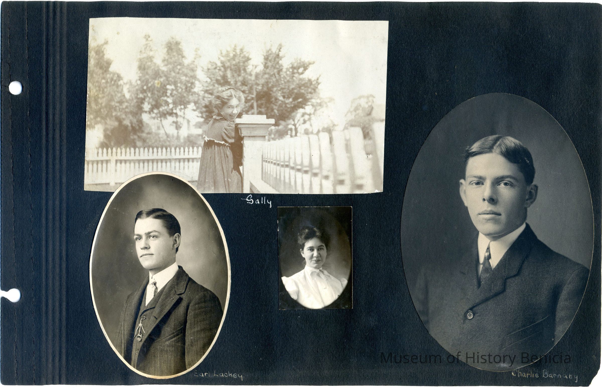 Photo album with a tooled leather cover that has the word "photographs" on the front and several colored diamonds down each side. The photo album is from the Parker/Teale families. Most pages have names written under the photos. The photos are so well documented and very firmly glued into the album that it is being kept together and photos are generally not being removed from the album.