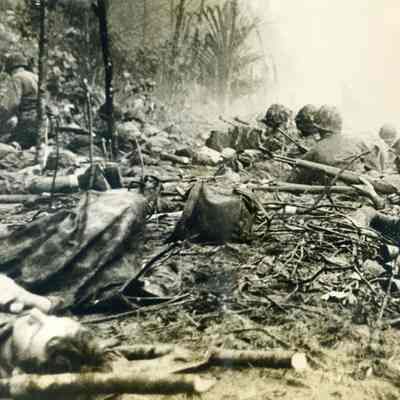 This is a scrapbook/photo album of World War II news wire photos and news text of the war in the Pacific. It features some graphic photos of prisoners of war and soldiers wounded or killed in action. None of the photos will be uploaded to our online archive and will only be available on the Museum's computers.