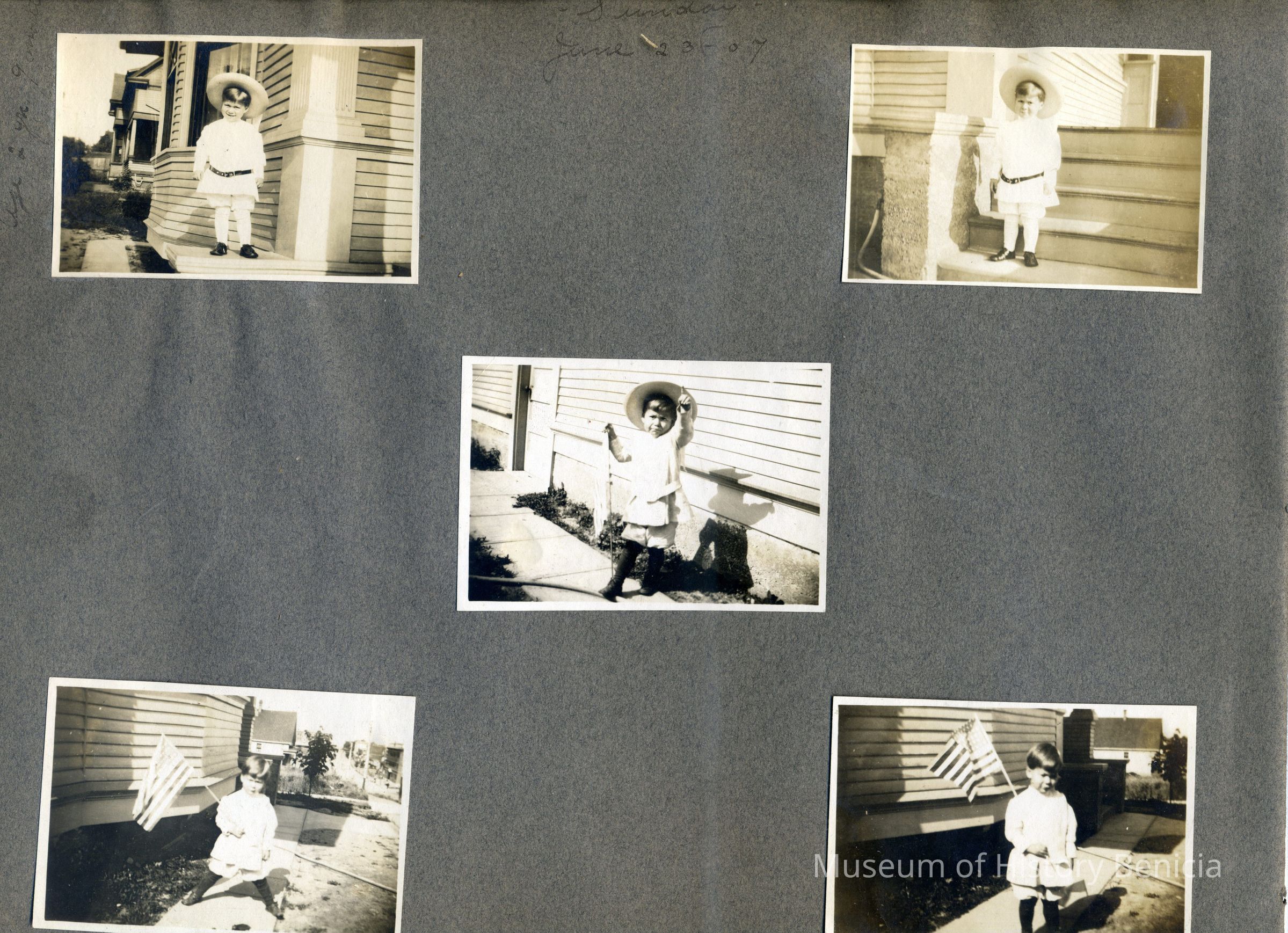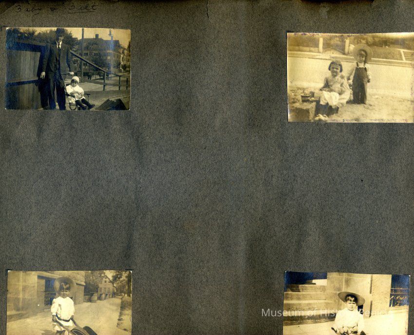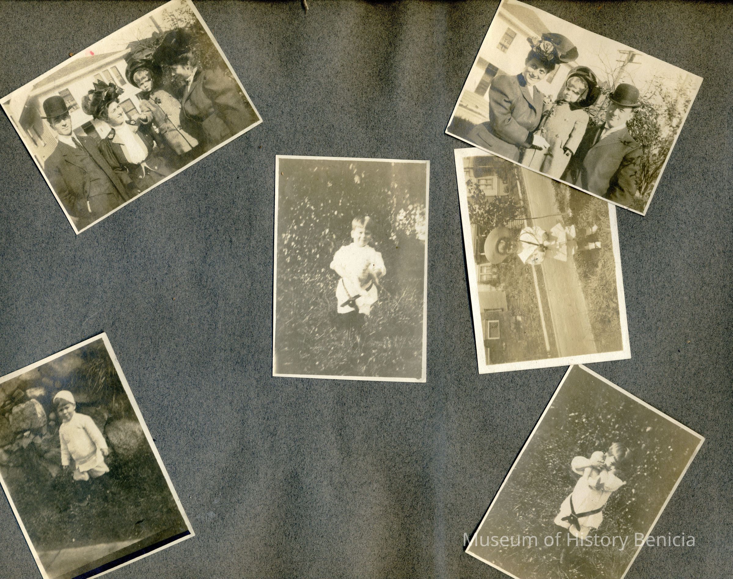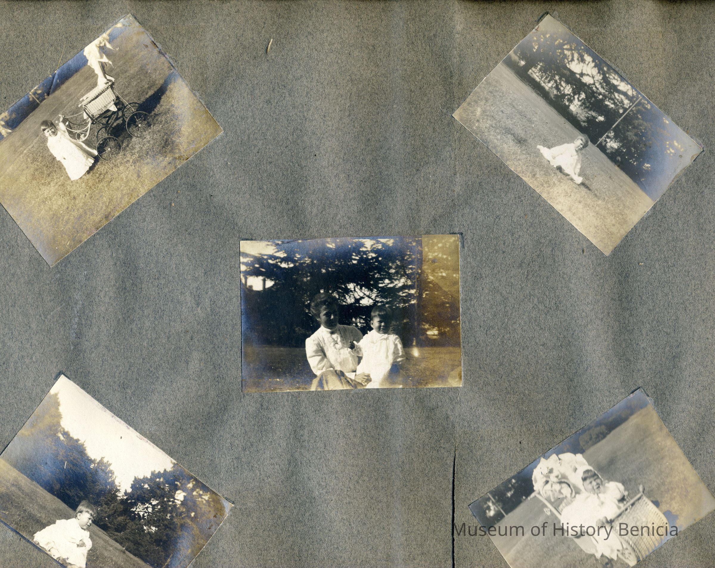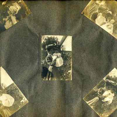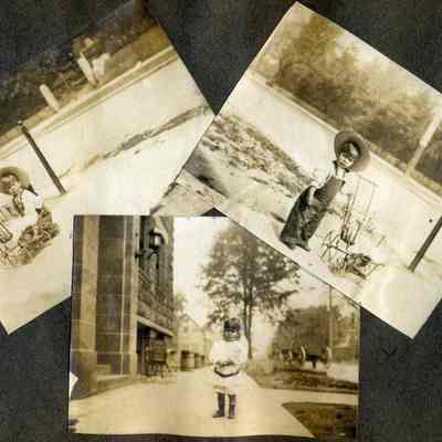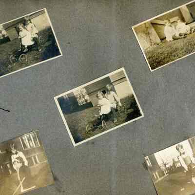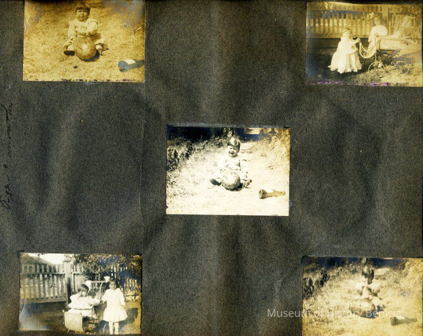 This is a velvet covered photo album measuring 10" x 12". It contans mostly photos of Godfrey Rueger Jr. at various ages. Godfrey Jr. was born 09/01/1904 in Benicia and died 03/16/1983 in Los Angeles. His parents were Godfrey Rueger (1875-1956) and Zoe Durner (1884 -). He had a sister named Zor born 1910. I think some of the photos are of her in this album.Collection