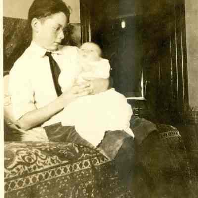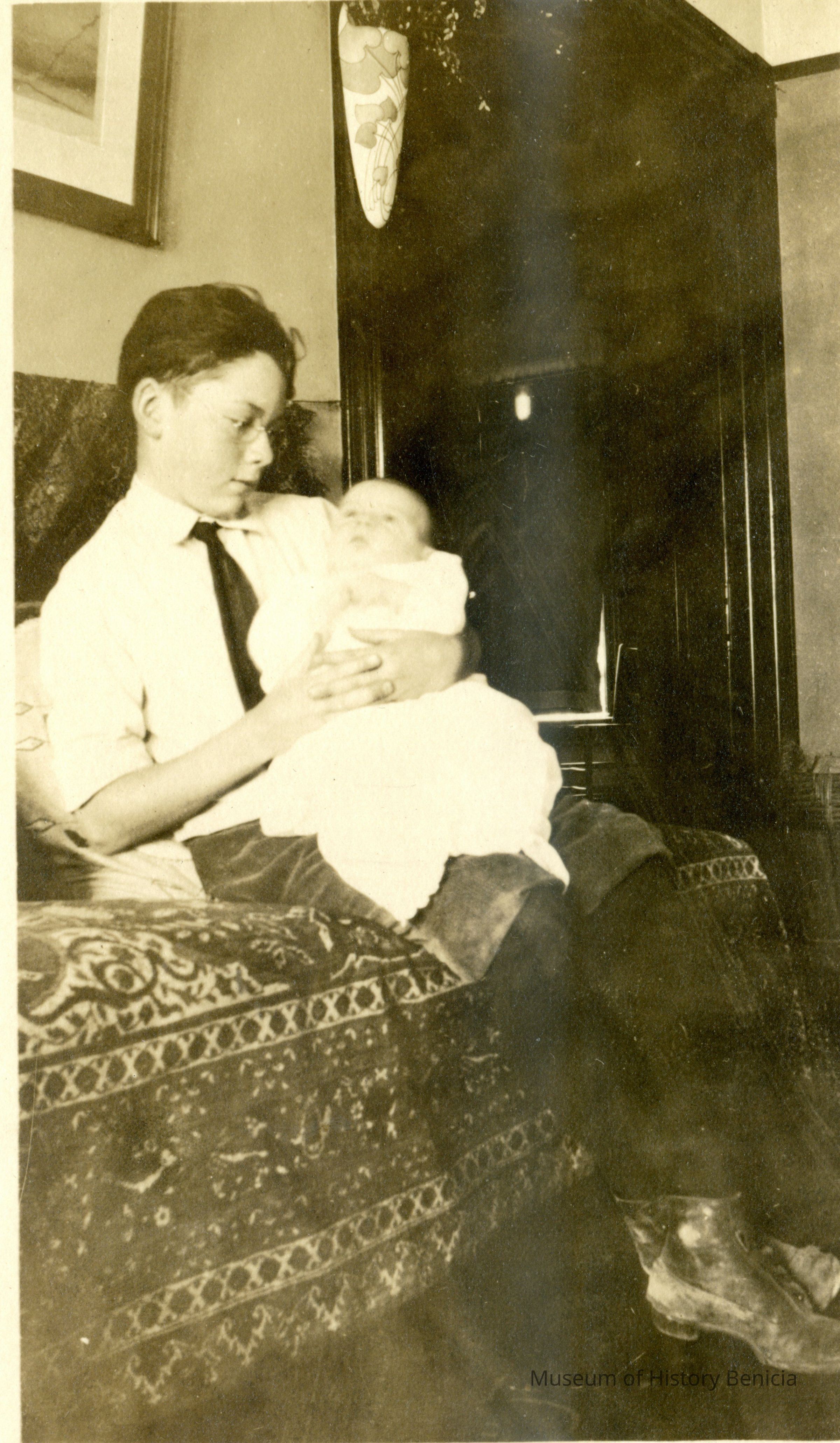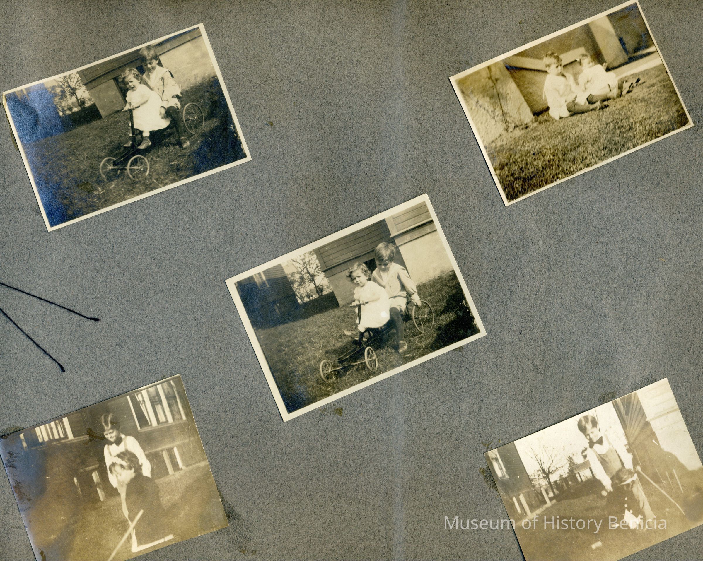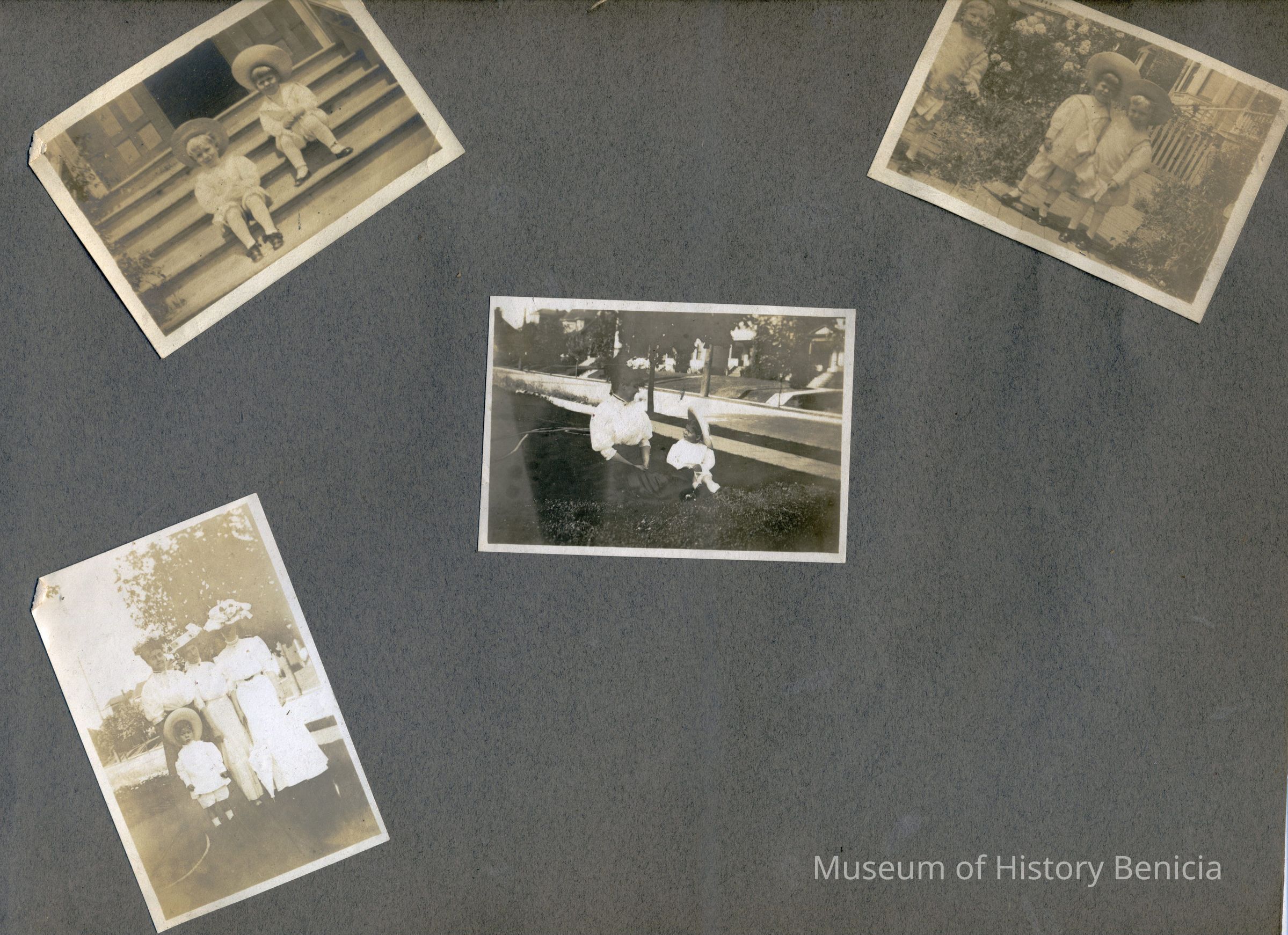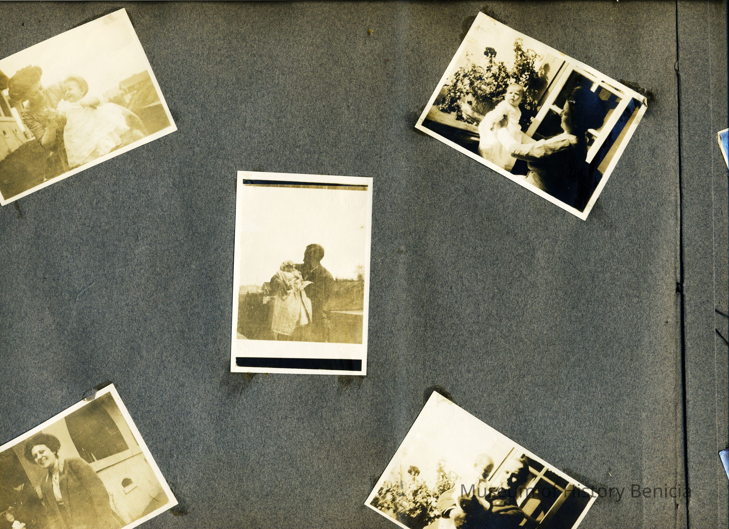 This is a velvet covered photo album measuring 10" x 12". It contans mostly photos of Godfrey Rueger Jr. at various ages. Godfrey Jr. was born 09/01/1904 in Benicia and died 03/16/1983 in Los Angeles. His parents were Godfrey Rueger (1875-1956) and Zoe Durner (1884 -). He had a sister named Zor born 1910. I think some of the photos are of her in this album.Collection