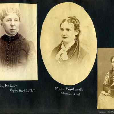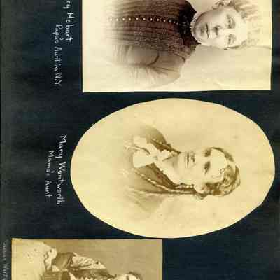 Photo album with a tooled leather cover that has the word "photographs" on the front and several colored diamonds down each side. The photo album is from the Parker/Teale families. Most pages have names written under the photos. The photos are so well documented and very firmly glued into the album that it is being kept together and photos are generally not being removed from the album.