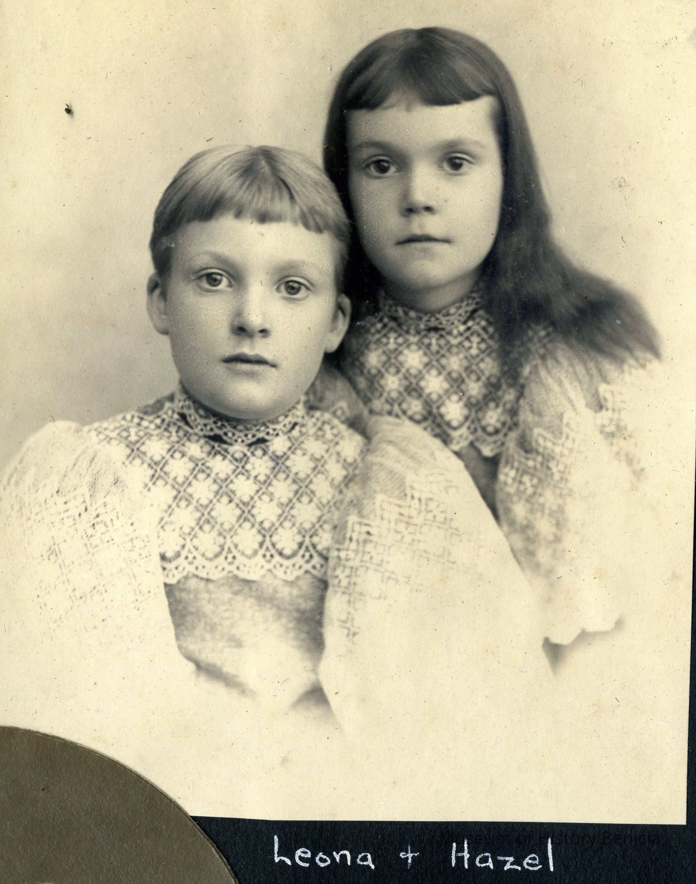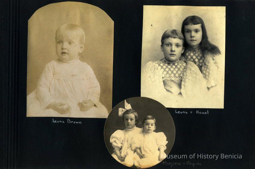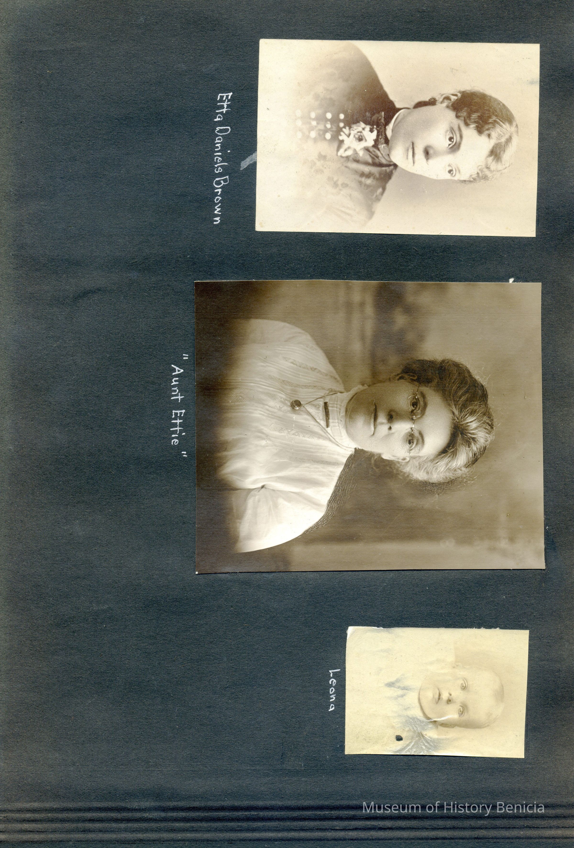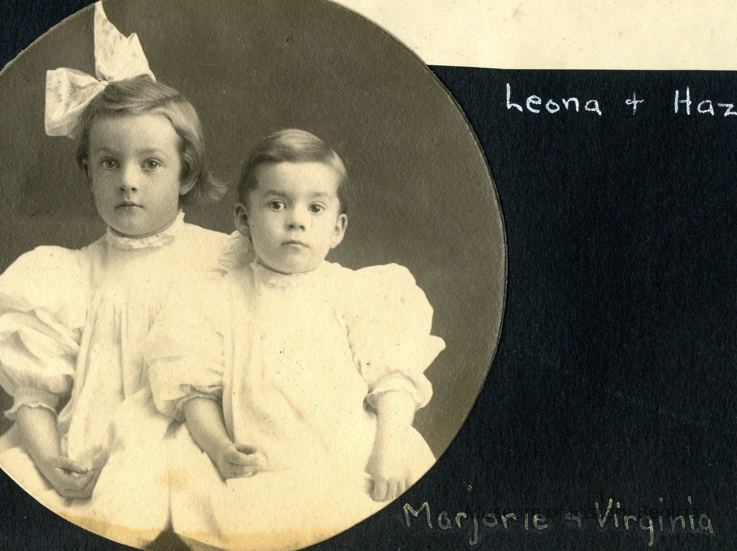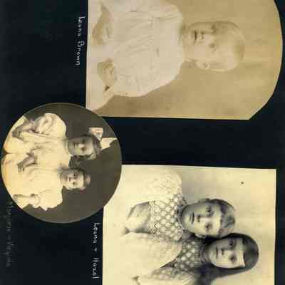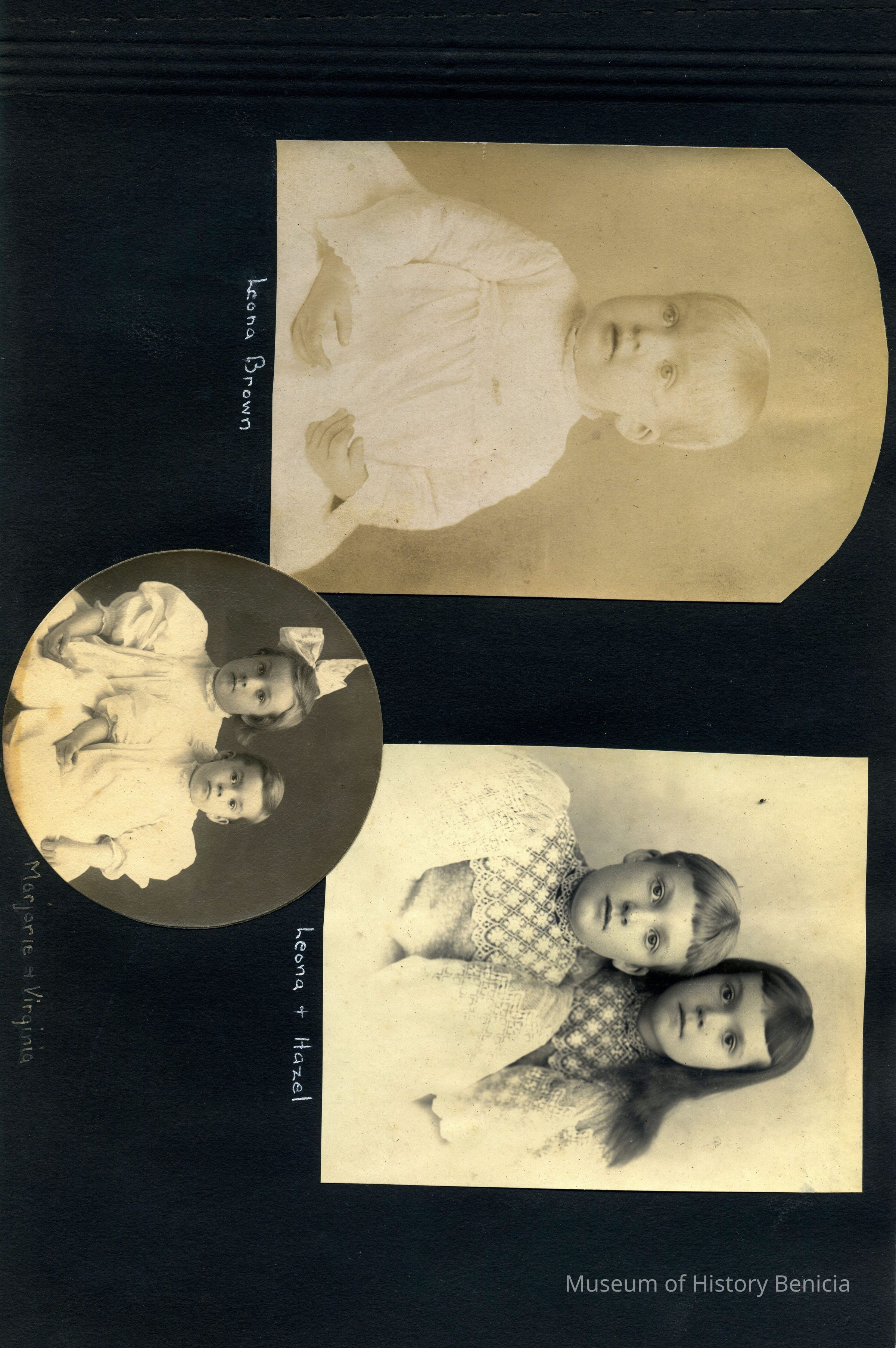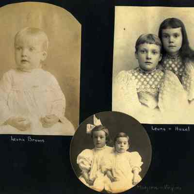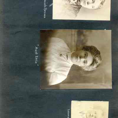 Photo album with a tooled leather cover that has the word "photographs" on the front and several colored diamonds down each side. The photo album is from the Parker/Teale families. Most pages have names written under the photos. The photos are so well documented and very firmly glued into the album that it is being kept together and photos are generally not being removed from the album.