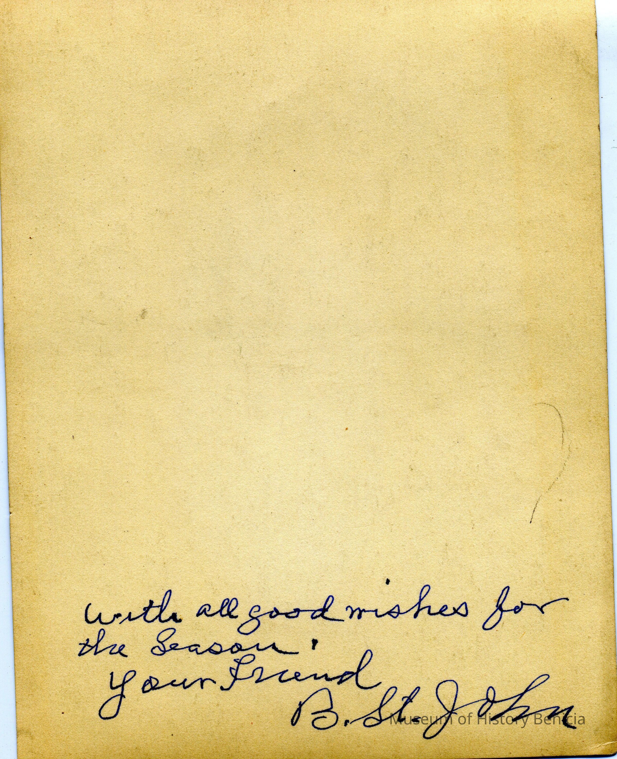 This was a loose photo in the album. It says this is Reverand B. St. John on the back. The donor says he was a minister at the Benicia Cogregational Church.Collection
