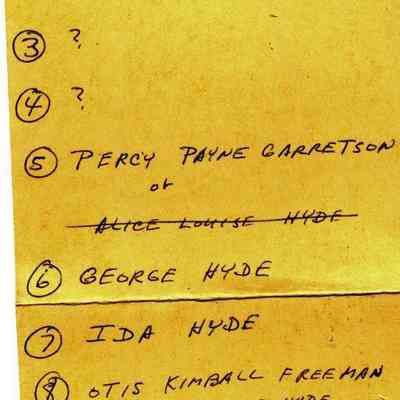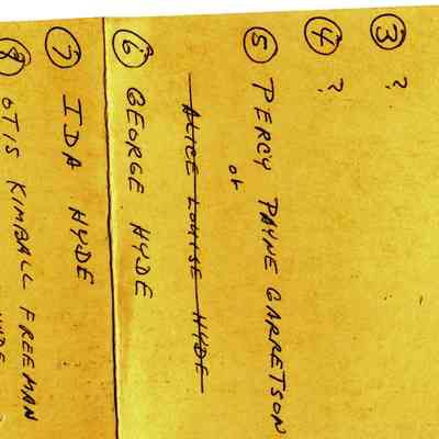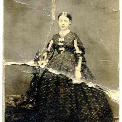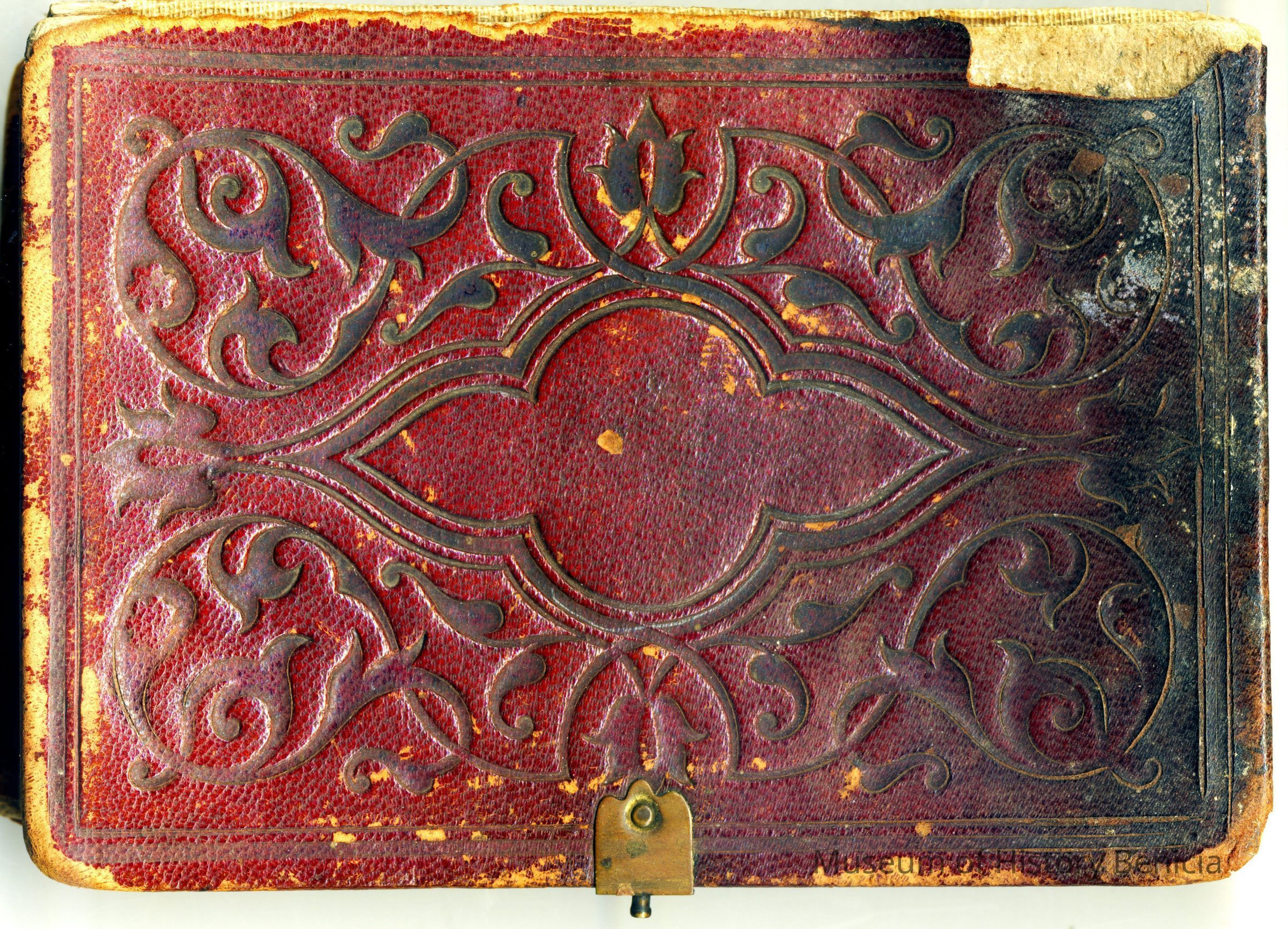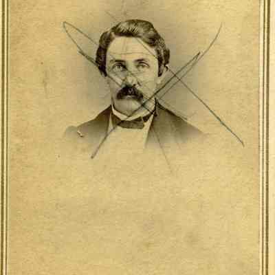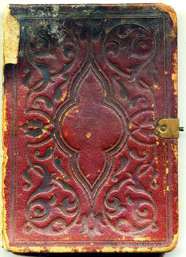 This is a small album measuring 5 1/8" by 3.75" and 1" thick. It has a cardboard cover with leather over the cardboard. There is a small metal clasp that has been broken. It contains 8 small carte de visite photos (some photos have been removed). There is an index in the back showing the 12 photos that used to be in the album. There is also a newer card in front that has names relating to the photos but no indication as to who wrote the names. In addition there are inscriptions under the photos that have been erased. Given the fact that the photos may have been moved around within the album, it is impossible to know for certain the names of each person.