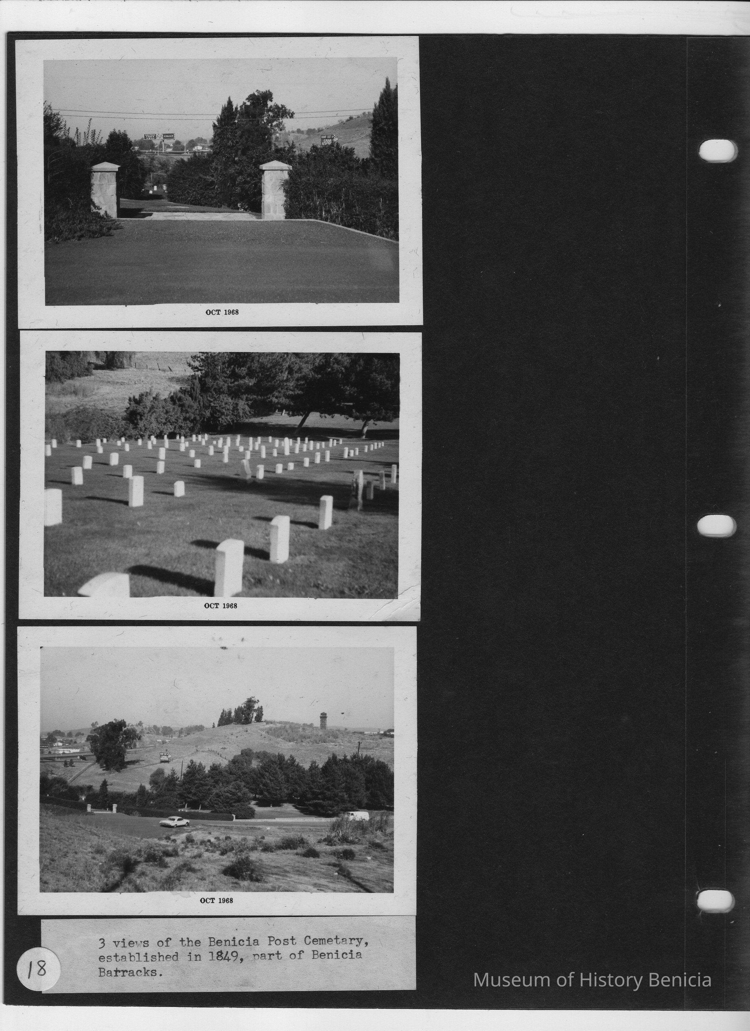 Page contains three B/W photos of the Benicia Post Cemetery.