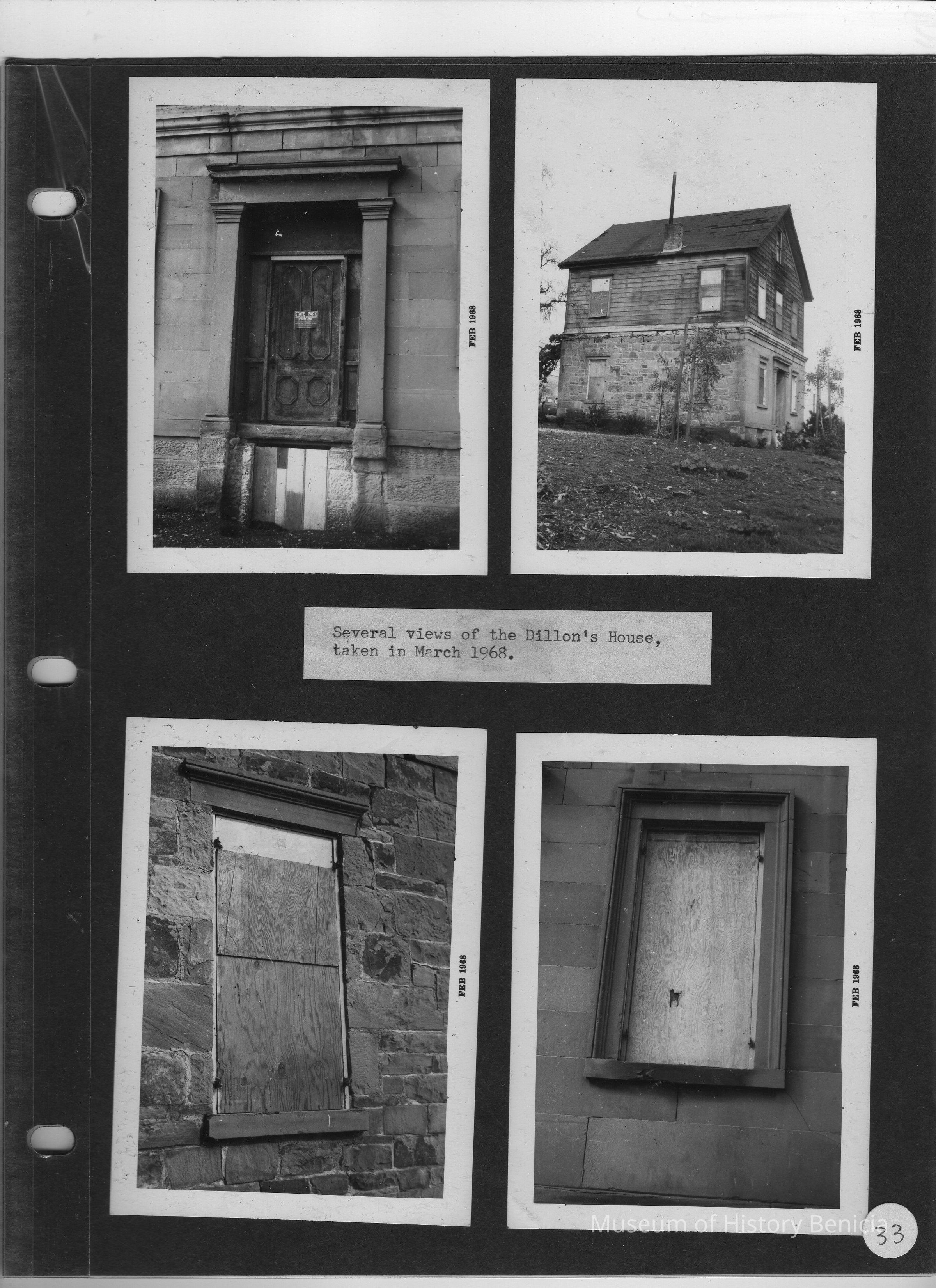 Page contains four B/W photos of the Dillon House, all taken in 1968.