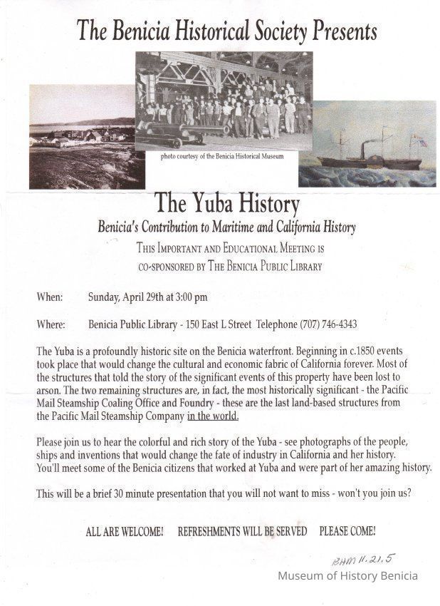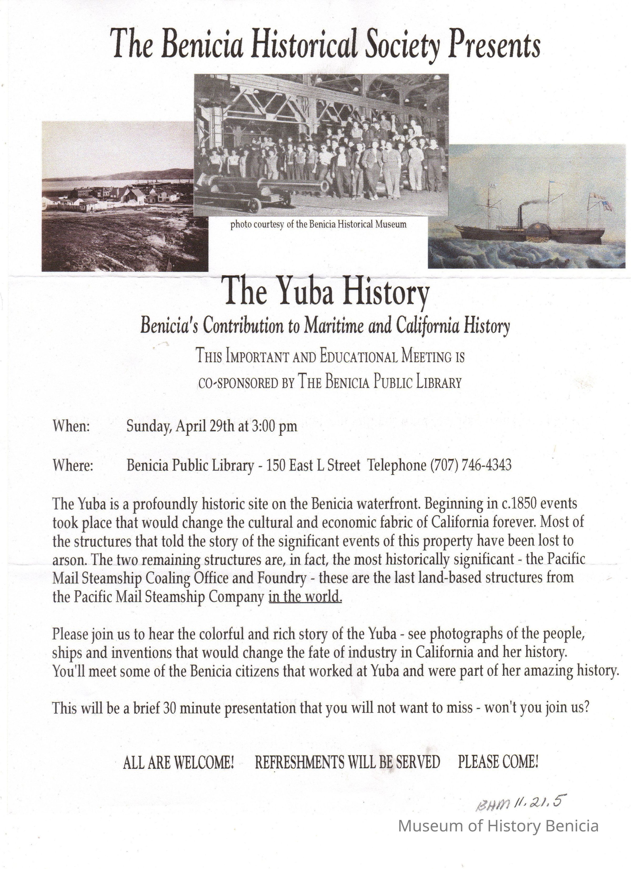 Announcement of a Benicia Historical Society Presentation of
