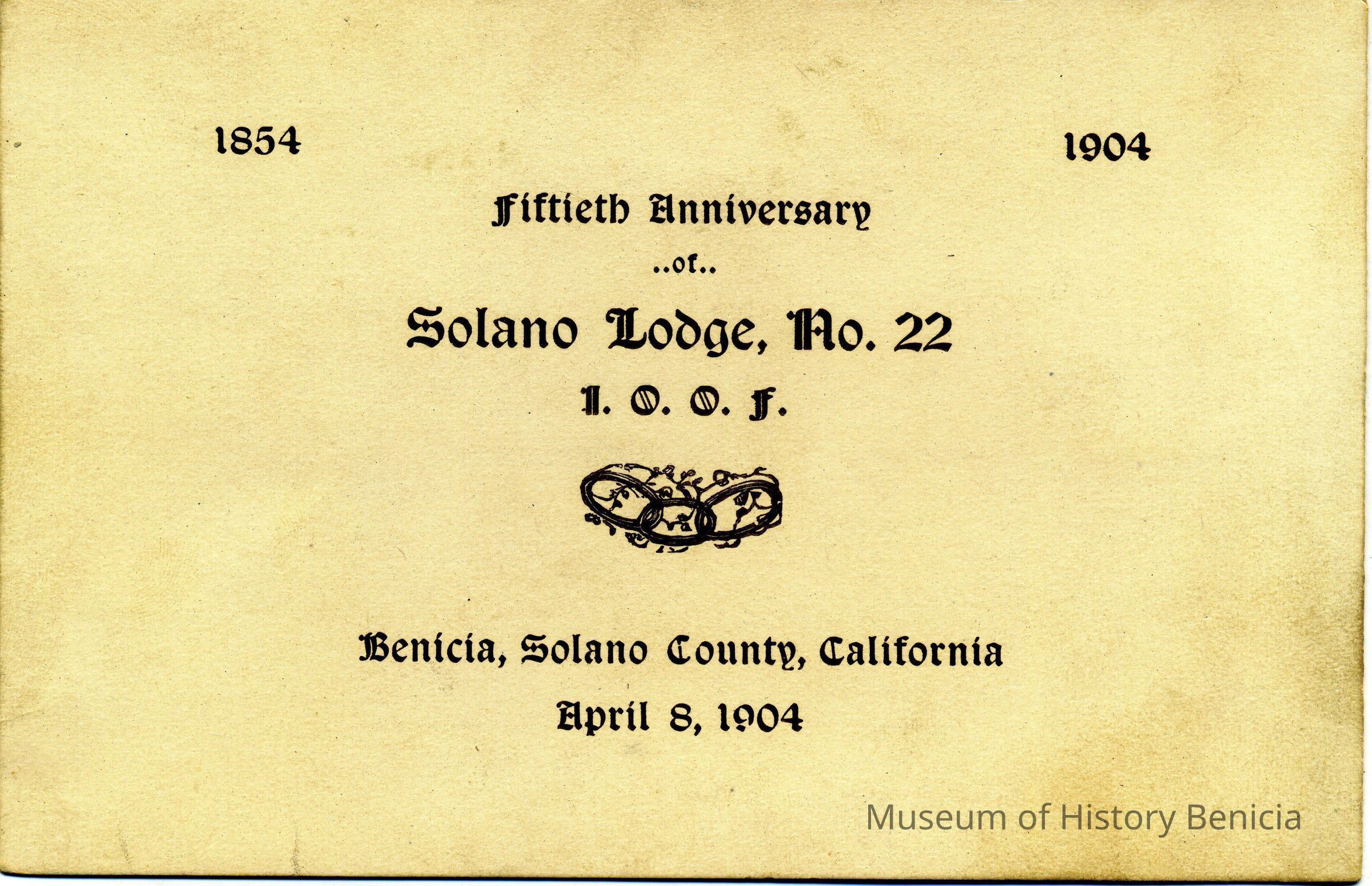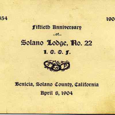 This is the announcement of the 50th anniversary of the Solano IOOF lodge number 22. It is in Benicia. This may part of the program shown in record number 2017.030.0785.Collection