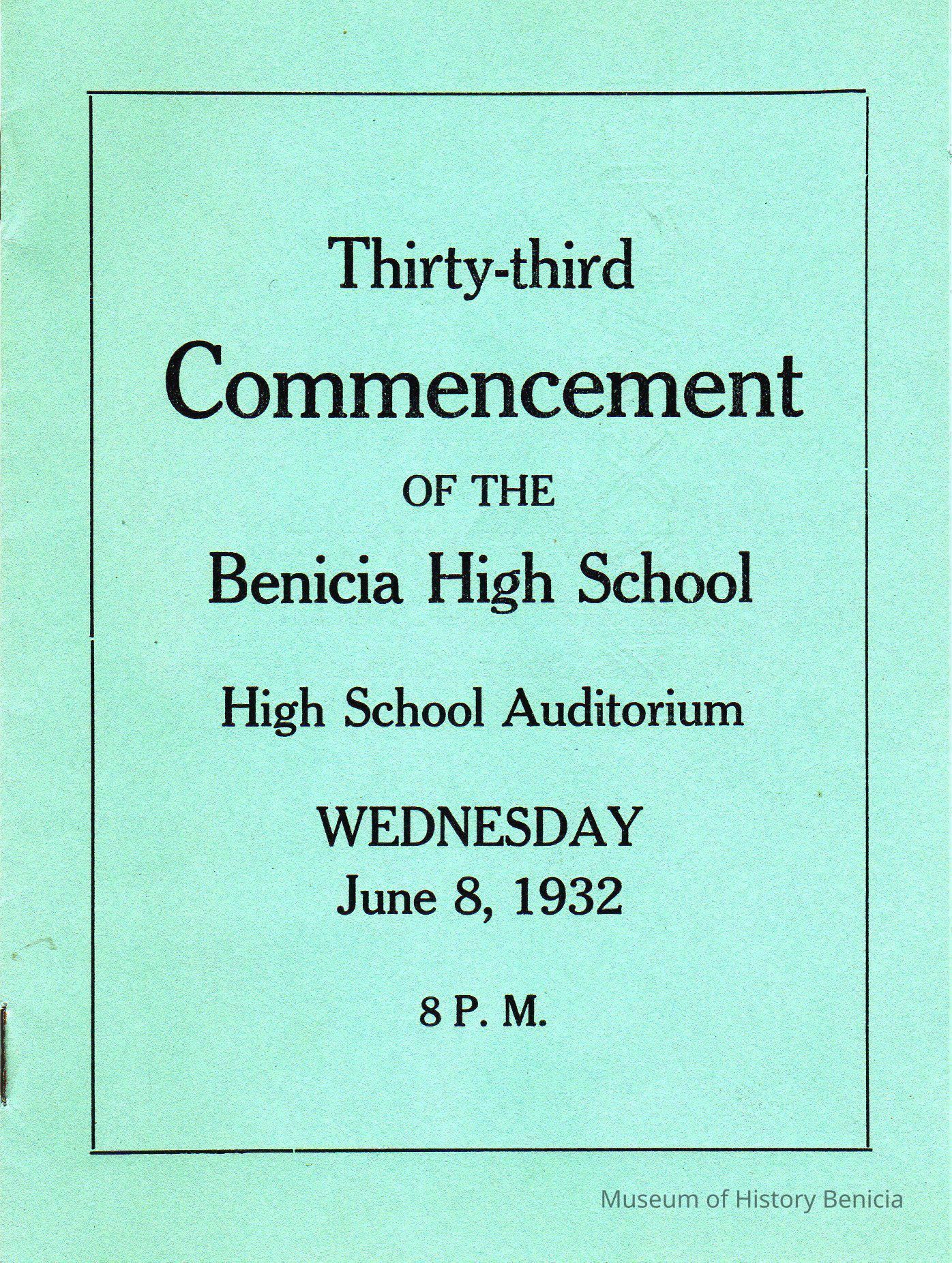 Mildred McClains Benicia High School Commencment announcement from 06/08/1932