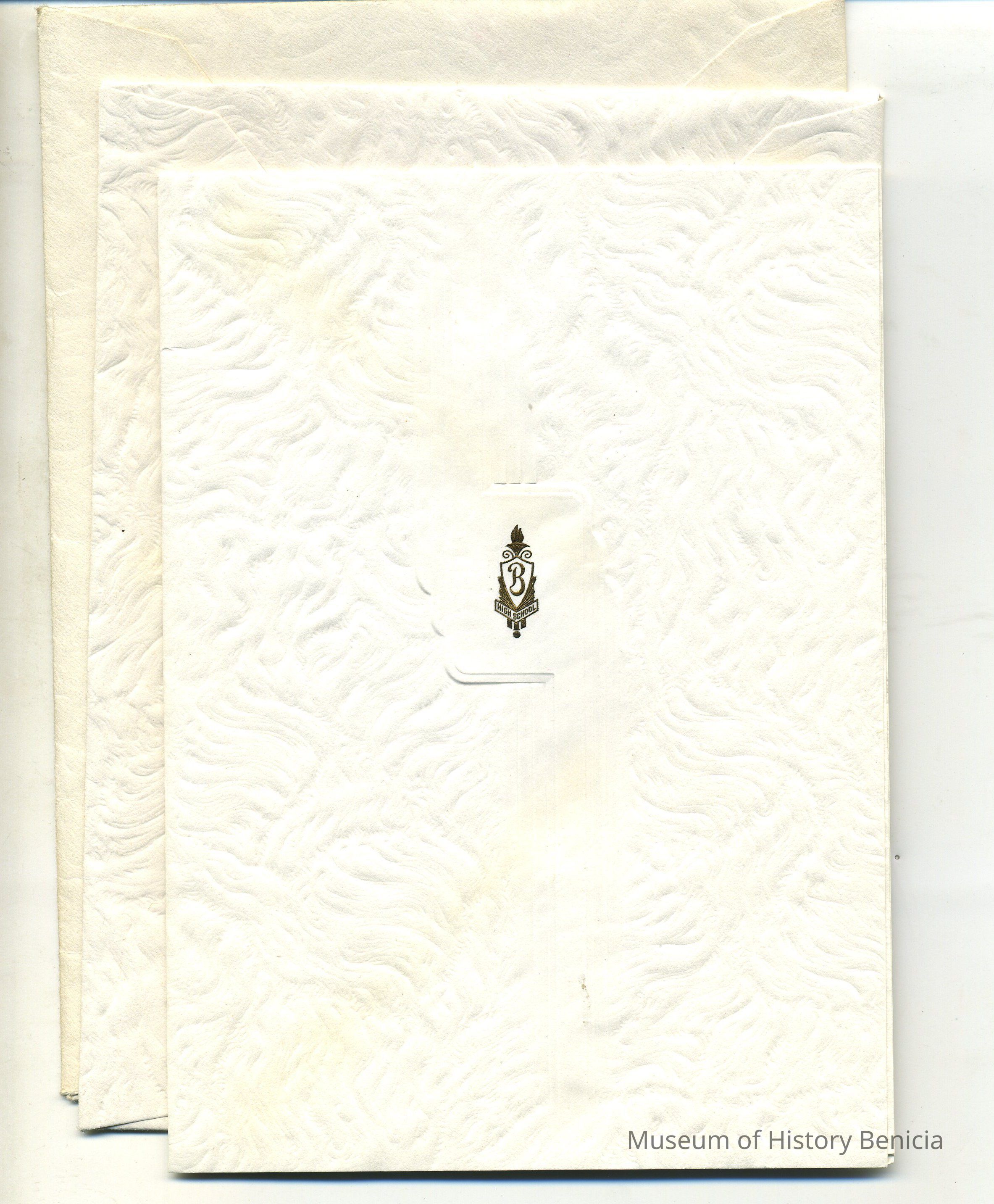 includes two envelopes, the inner one which is blank and the outer one addressed to Mr. & Mrs. Robert Marchioni / Benicia, Calif.; from Box 395, Benicia, Calif.