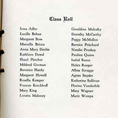 Commencement book from Dominican College for 1928. Some of the graduates are: